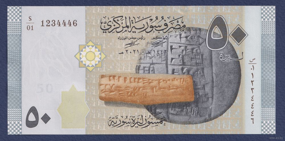 Сирия, 50 фунтов 2021 г., P-112 (номинация IBNS 2010, гаритский алфавит на клинописных табличках из Эблы), UNC