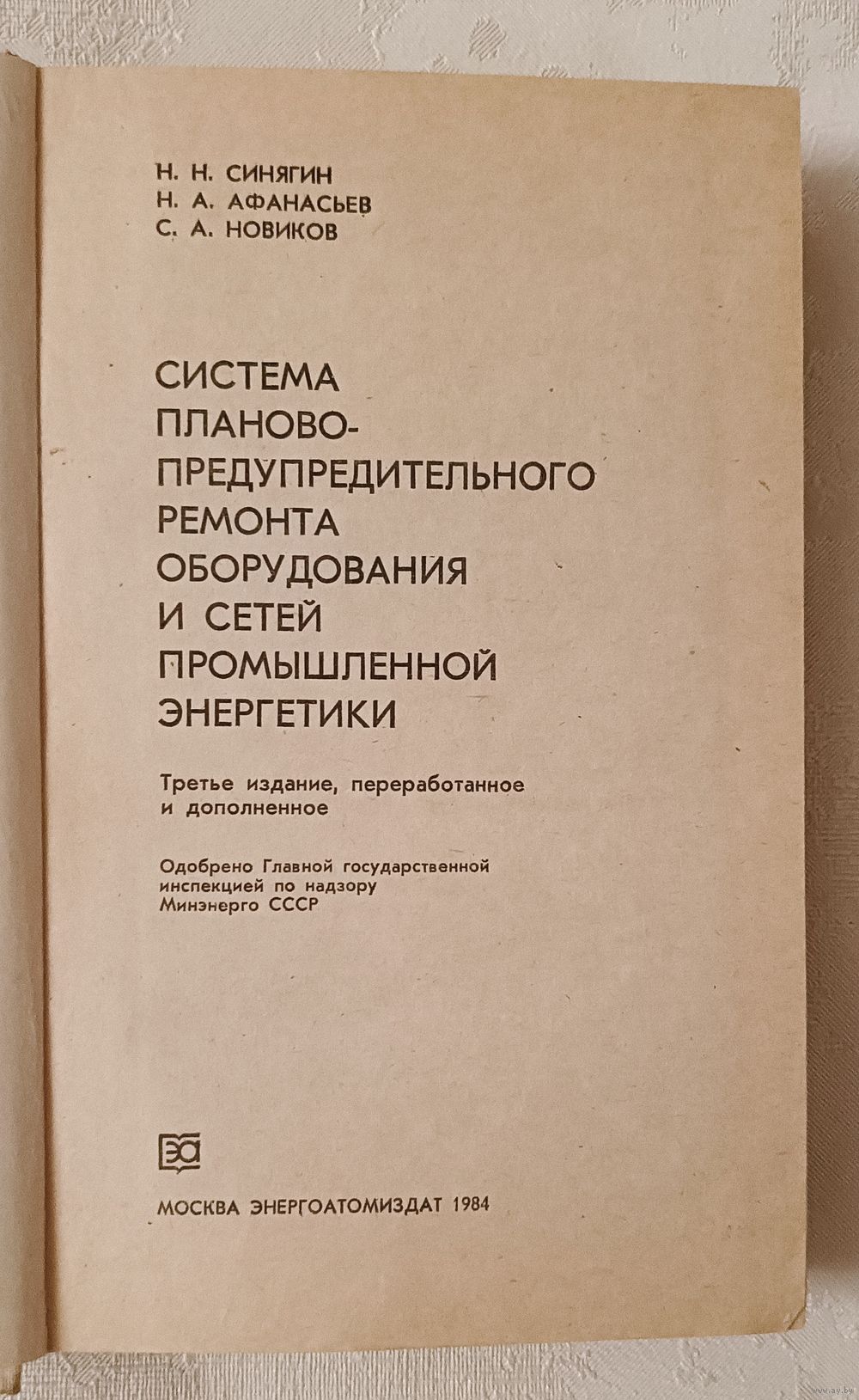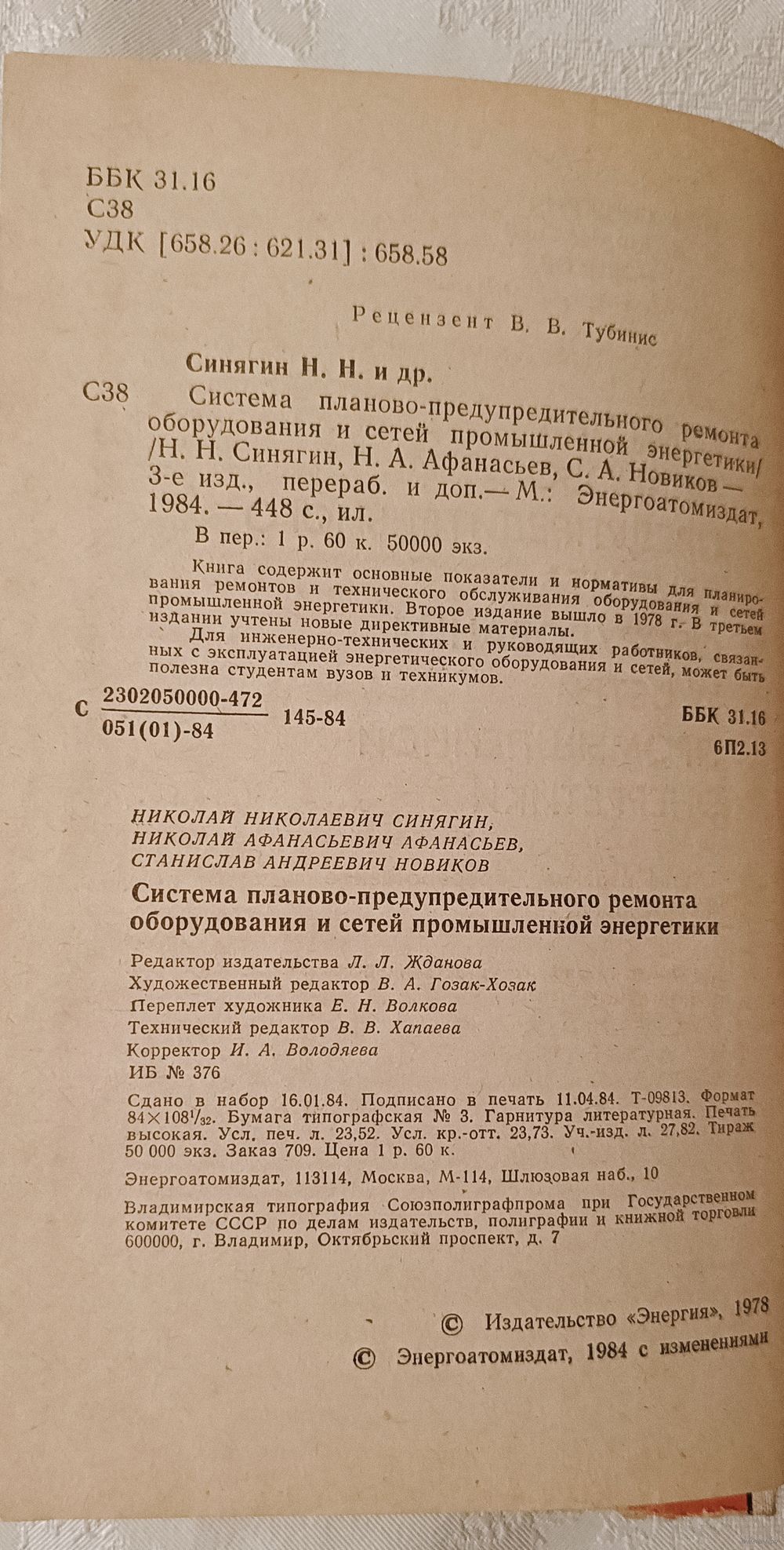Система планово-предупредительного ремонта оборудования и сетей промышленной энергетики//Н. Н. Синягин, Н. А. Афанасьев, С. А. Новиков -3-е изд., перераб. и доп. - М.: Энергоатомиздат, 1984.- 448 с., ил., твёрдый переплёт, обычный формат.