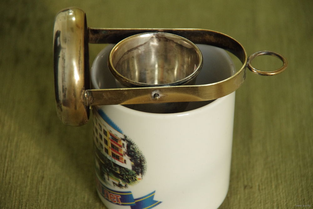 Ситечка для заварки чая , латунь с серебрение в редком исполнении ( выста 12, 5 см , ширина 6,5 см )
