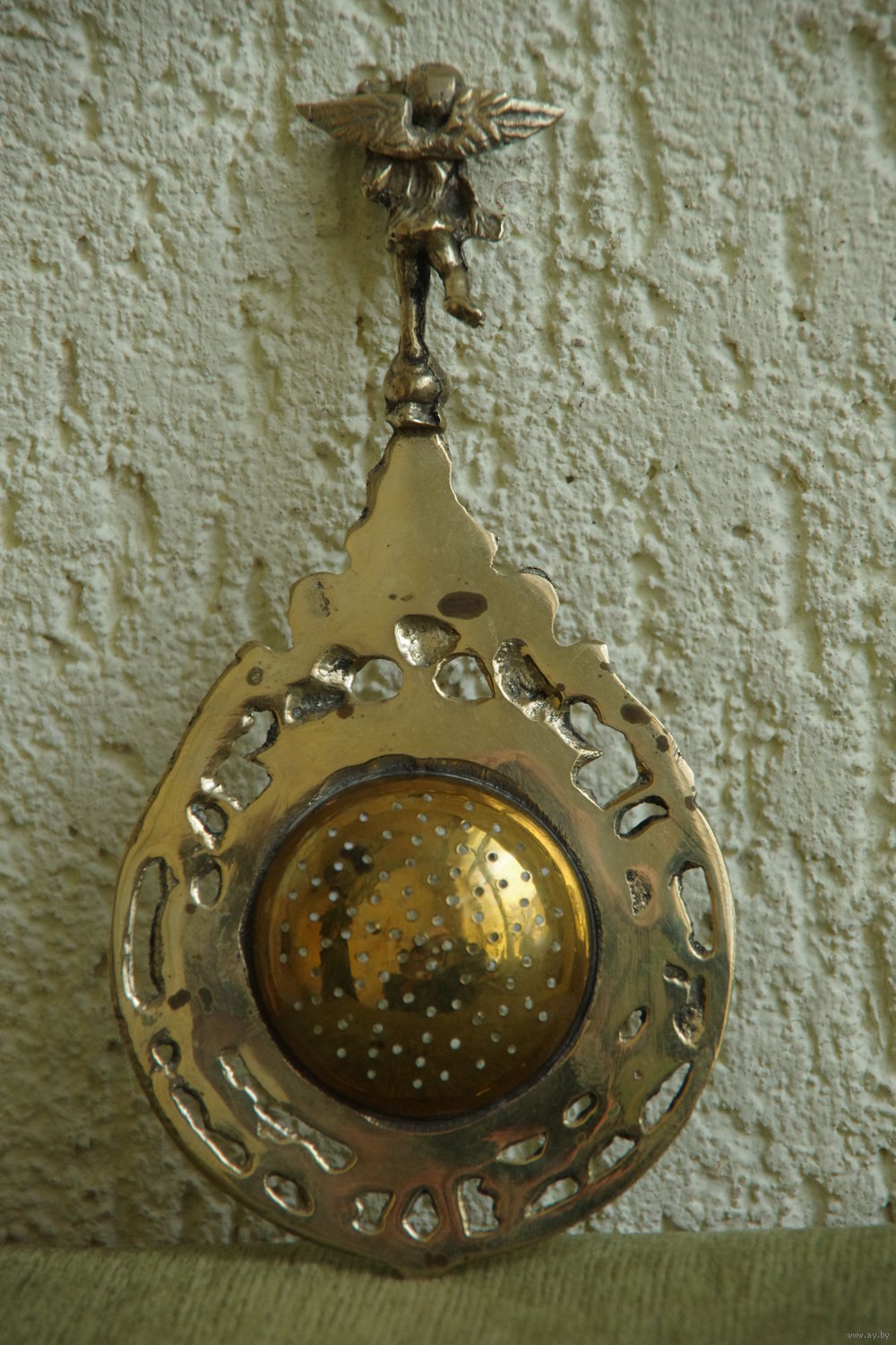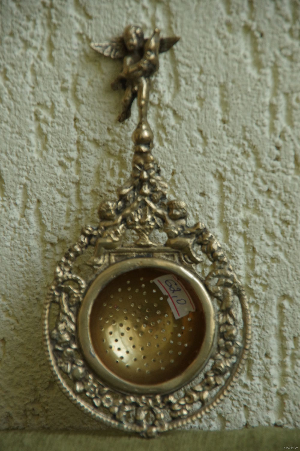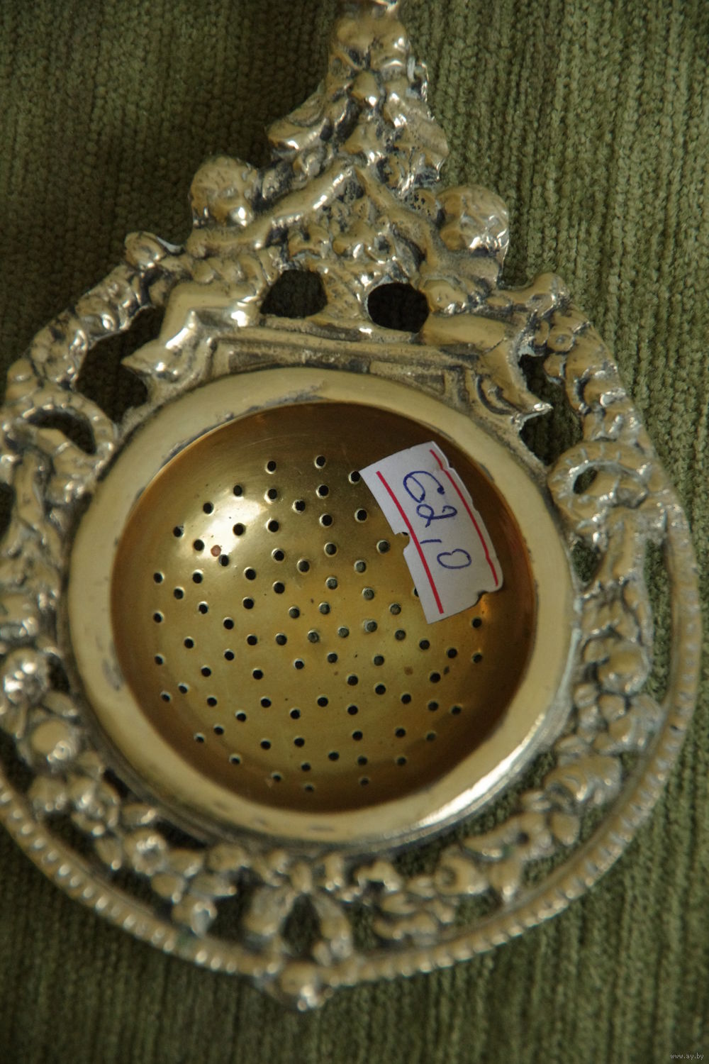 Ситечко для заварки чая , лить , латунь с серебрением ( 9 см х 17,5 см )