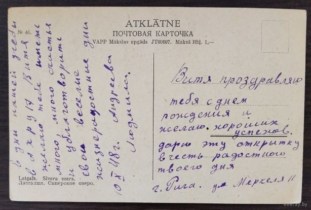 Сиверское озеро, Латгалия, 1948 г., подписанная