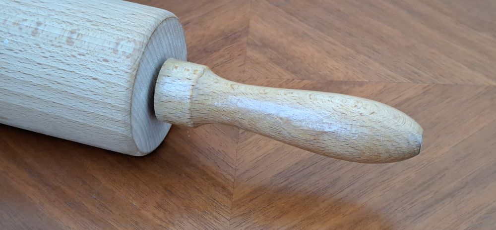 Скалка Германия ХХ век длина 44 см., ручки, за которые держатся, крутятся отдельно, от главной части..