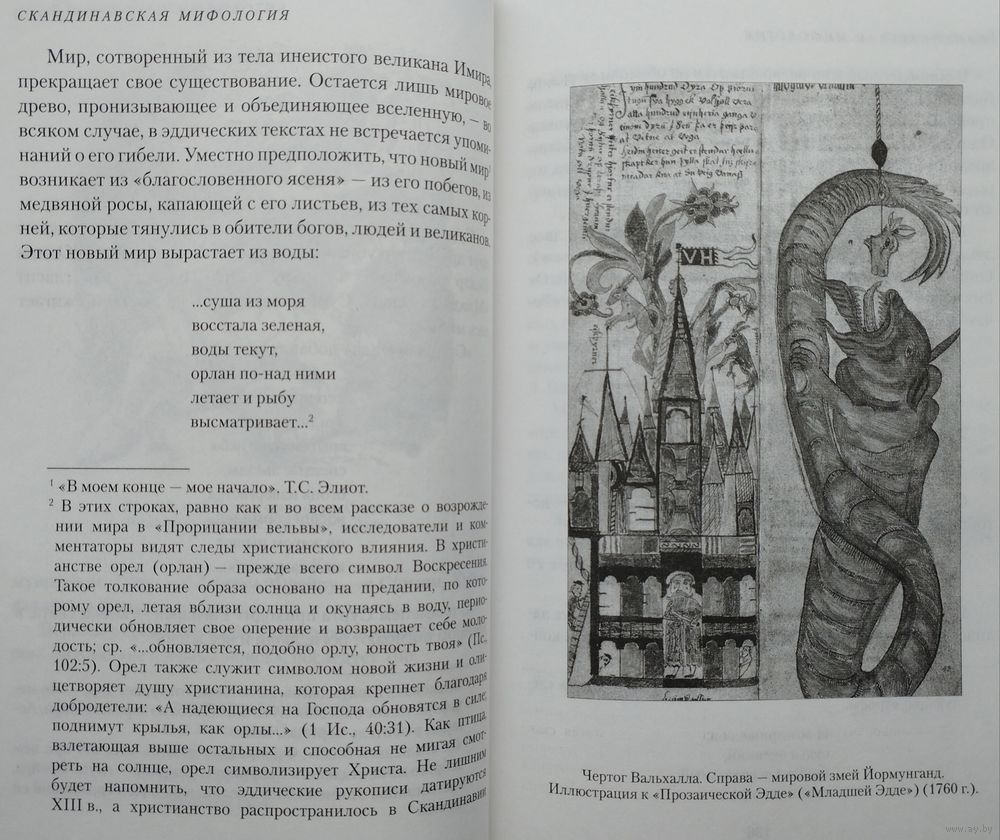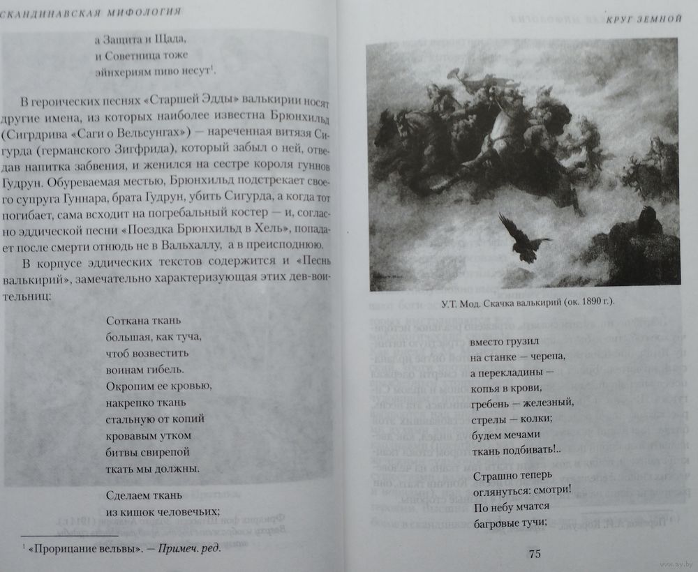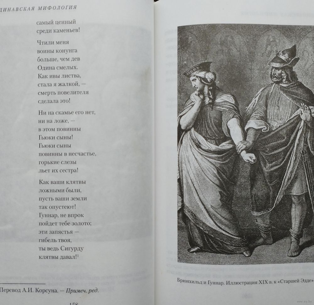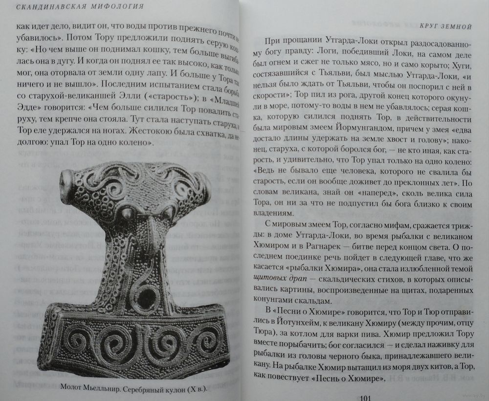 Большой формат. Тираж 4100 экз. 598 стр. Викинги некогда приводили в трепет всю Европу. Начав с покорения ближайших соседей, норманны, то есть "северные люди", ни много, ни мало изменили "вектор цивилизации". Юг нес на Север утонченность культуры, многочисленные технические достижения и религию Белого Бога; Север же коренным образом изменил этническую карту Европы, наладил морские коммуникации с опорой на Балтику и Северное море - и утвердил на пространстве от Тронхейма до Таррагоны и от Новгорода до Нормандии свой кодекс чести и свою веру, которая позднее стала именоваться "мифологией викингов". Одноглазый хитрец Один и могучий Тор, коварный насмешник Локи и прекрасная Фрейя, светлый бог Бальдр, мировой змей Йормунганд и многие, многие другие - все это мифопоэтическая традиция Севера, иначе - скандинавская мифология.