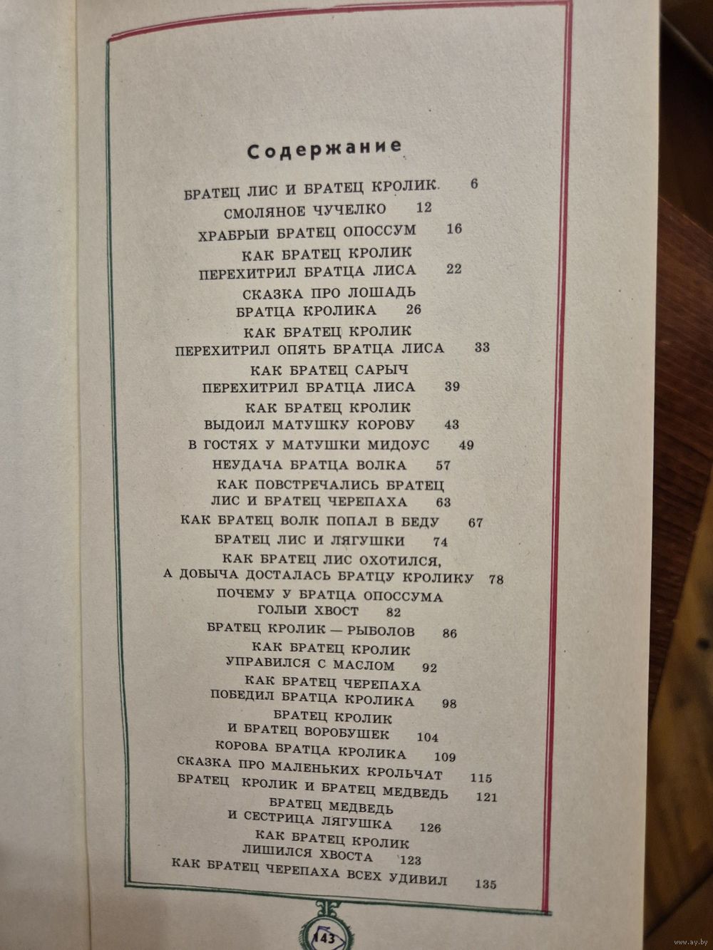 25 сказок североамериканских народов, обработанных Харрисом о Братце Кролике, Братце Лисе и других . Прославившиеся на весь мир сказки американских негров о животных с человеческими повадками, собранные и переработанные Джоэлем Чендлером Харрисом (1848-1908), фольклористом и журналистом, любимы людьми разных поколений за добродушный юмор и задушевность, за мягкую назидательность без нравоучения и за яркие и выразительные характеры персонажей - Братца Кролика, Братца Лиса и других.