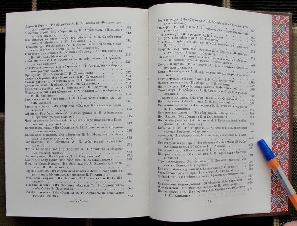 - Поповские увертки (русская народная сказка в обработке В. П. Аникина), стр. 599
