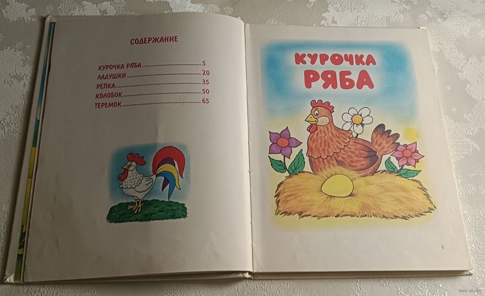 В сборник вошли Курочка Ряба, Ладушки, Репка, Колобок, Теремок. В книгах из серии "Для самых маленьких" Вы встретитесь с героями сказок и стихов, знакомых всем с раннего детства. Красочные иллюстрации выполнены известными художниками-мультипликаторами Исайкин Ю. Я., Котёночкин А. В., Сокольская Т. Г., Сокольский Г. М.