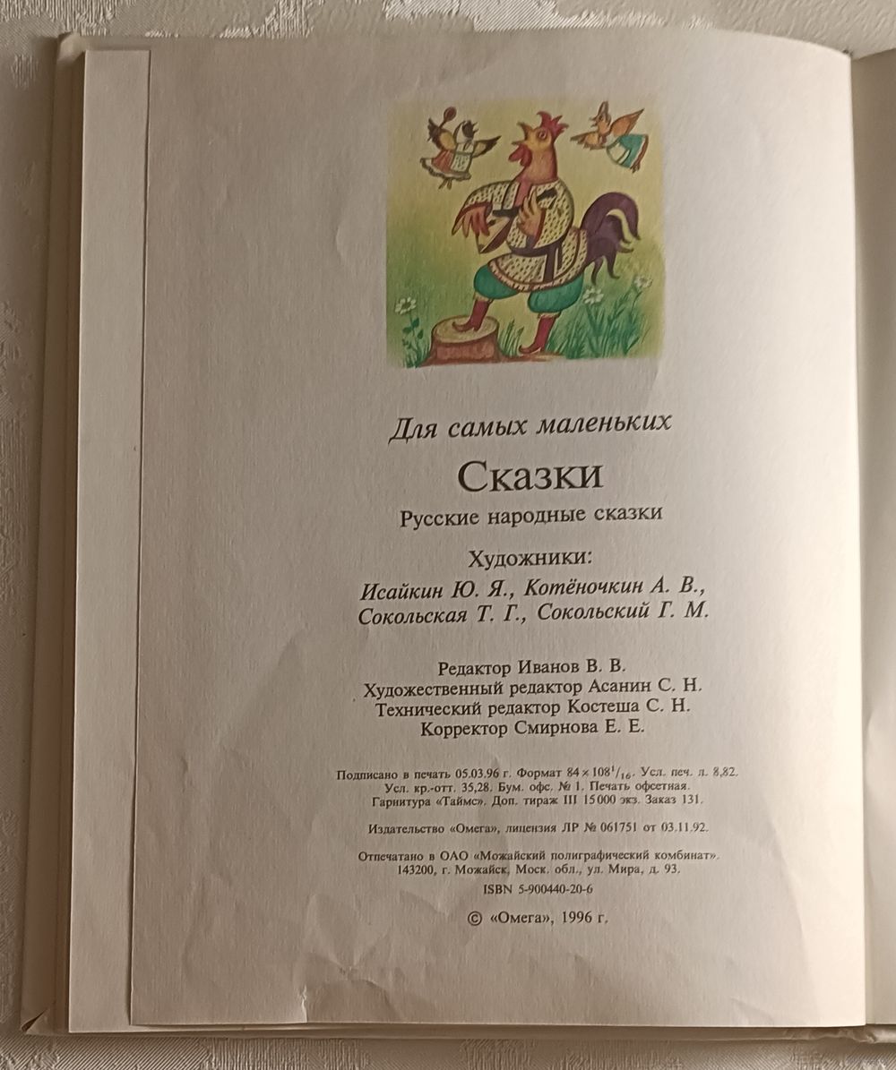 Сказки. Русские народные сказки для самых маленьких. М., изд. Омега, 1996, стр. 80, твёрдый переплёт, увеличенный формат.