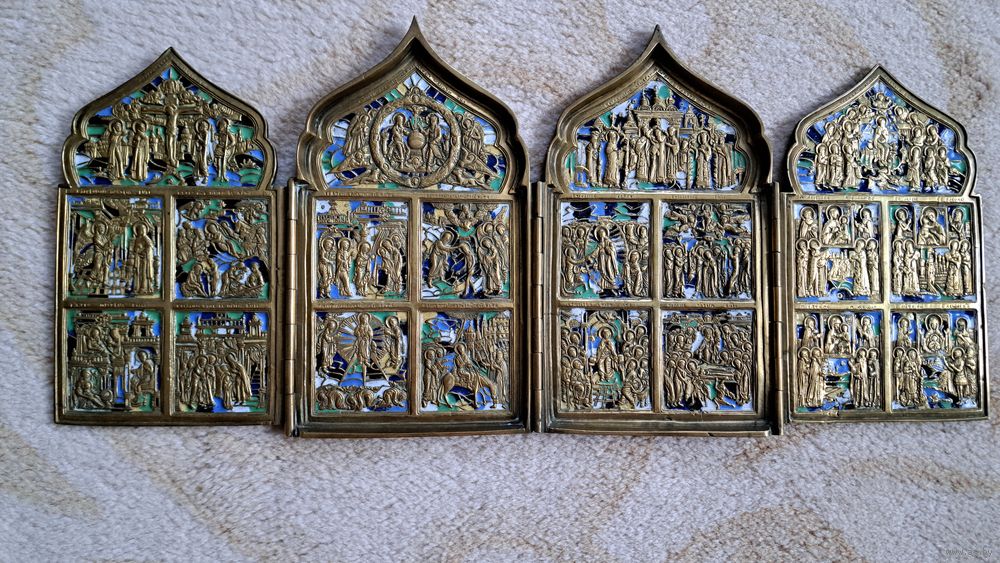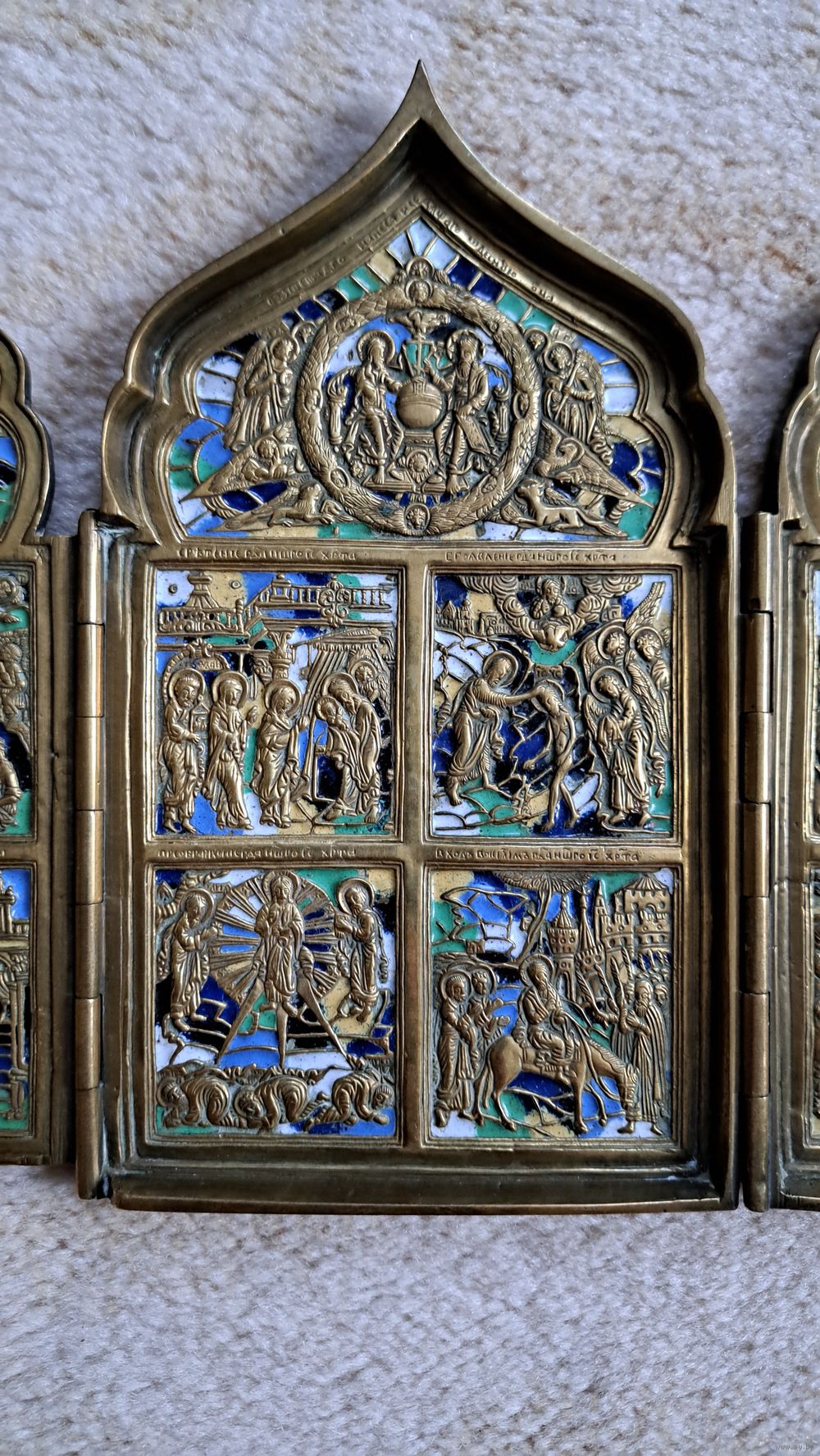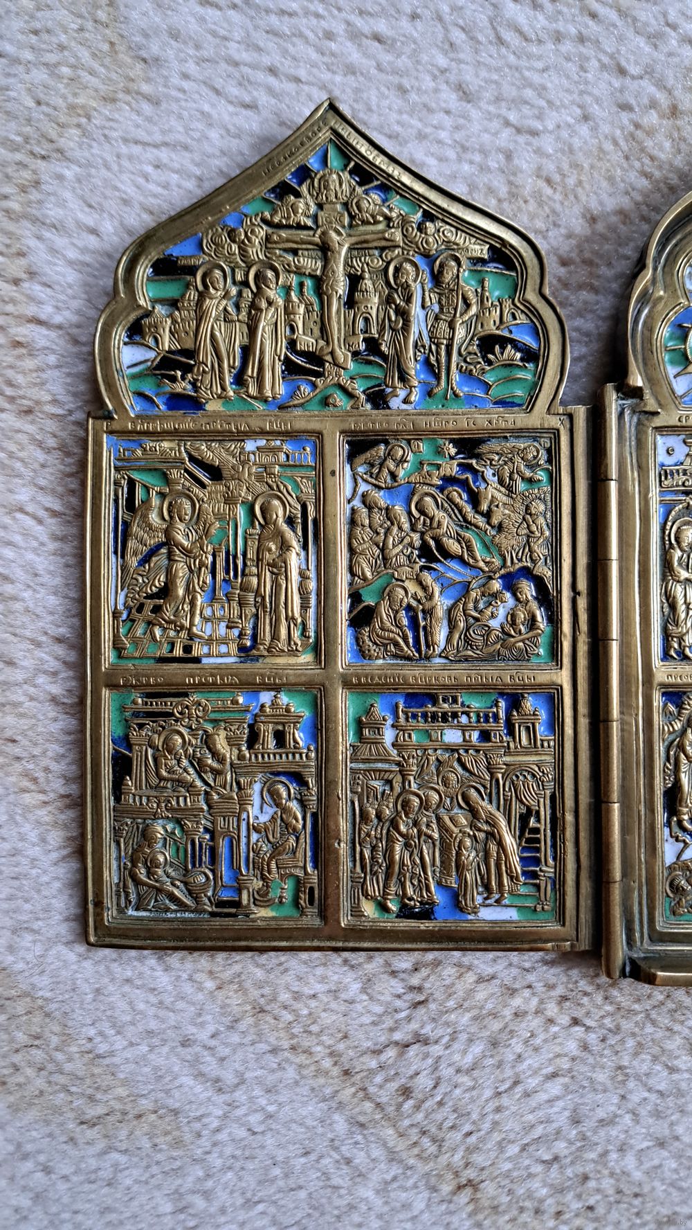 Отличный коллекционный предмет. Родион Хрусталев. Размер складня в разложенном виде 40.6 × 18 см. Шесть цветов эмалей. Смотрите также и на другие мои лоты. Всегда много интересного в продаже. КУПЛЮ ИКОНЫ. КУПЛЮ УГОЛЬНЫЕ САМОВАРЫ. КУПЛЮ СТАТУЭТКИ И ДРУГОЙ АНТИКВАРИАТ. КУПЛЮ ЧАСЫ КОРПУСА С МАРКИРОВКОЙ АУ. КУПЛЮ МОНЕТЫ, ЗНАКИ, НАГРАДЫ.