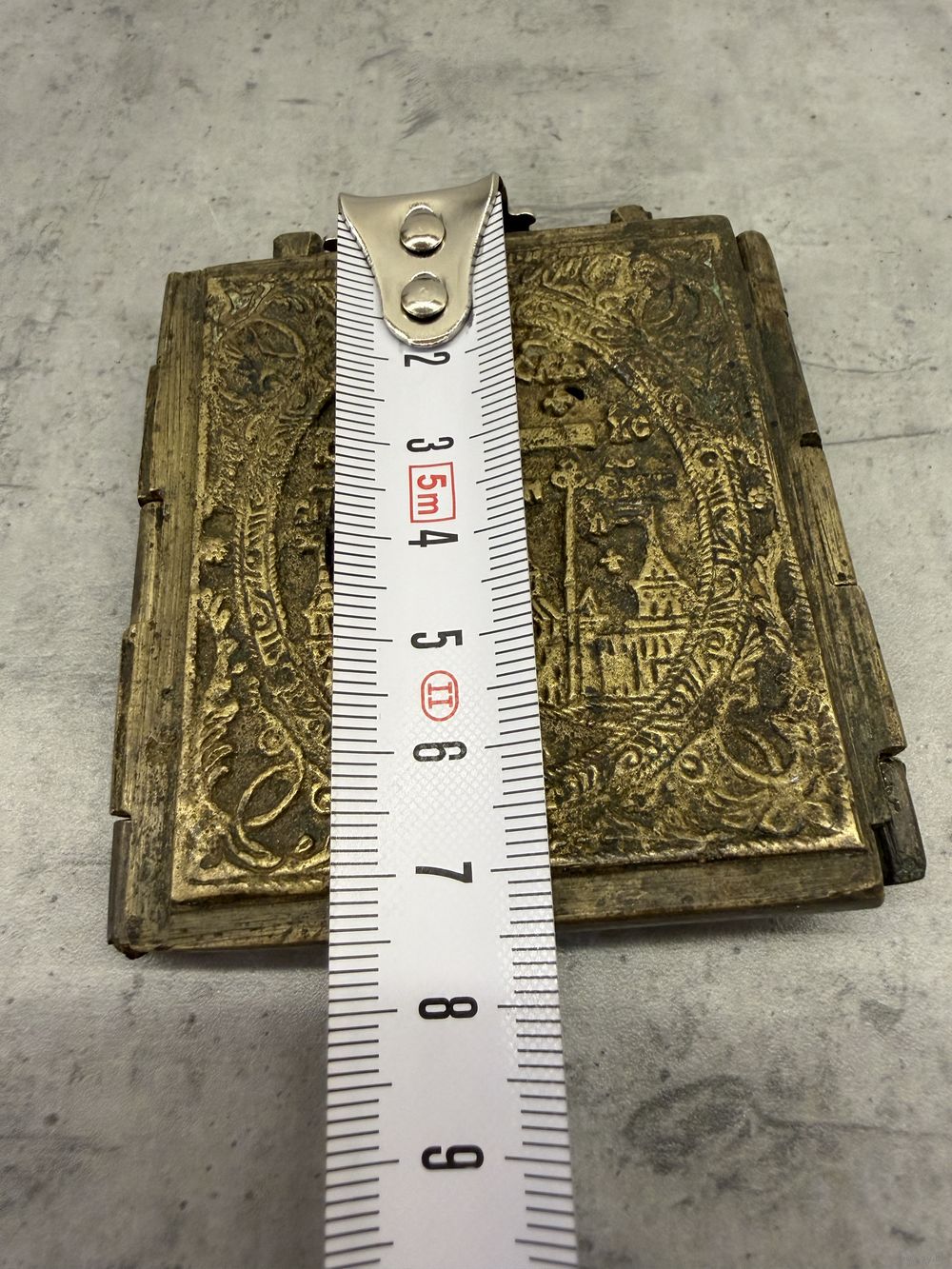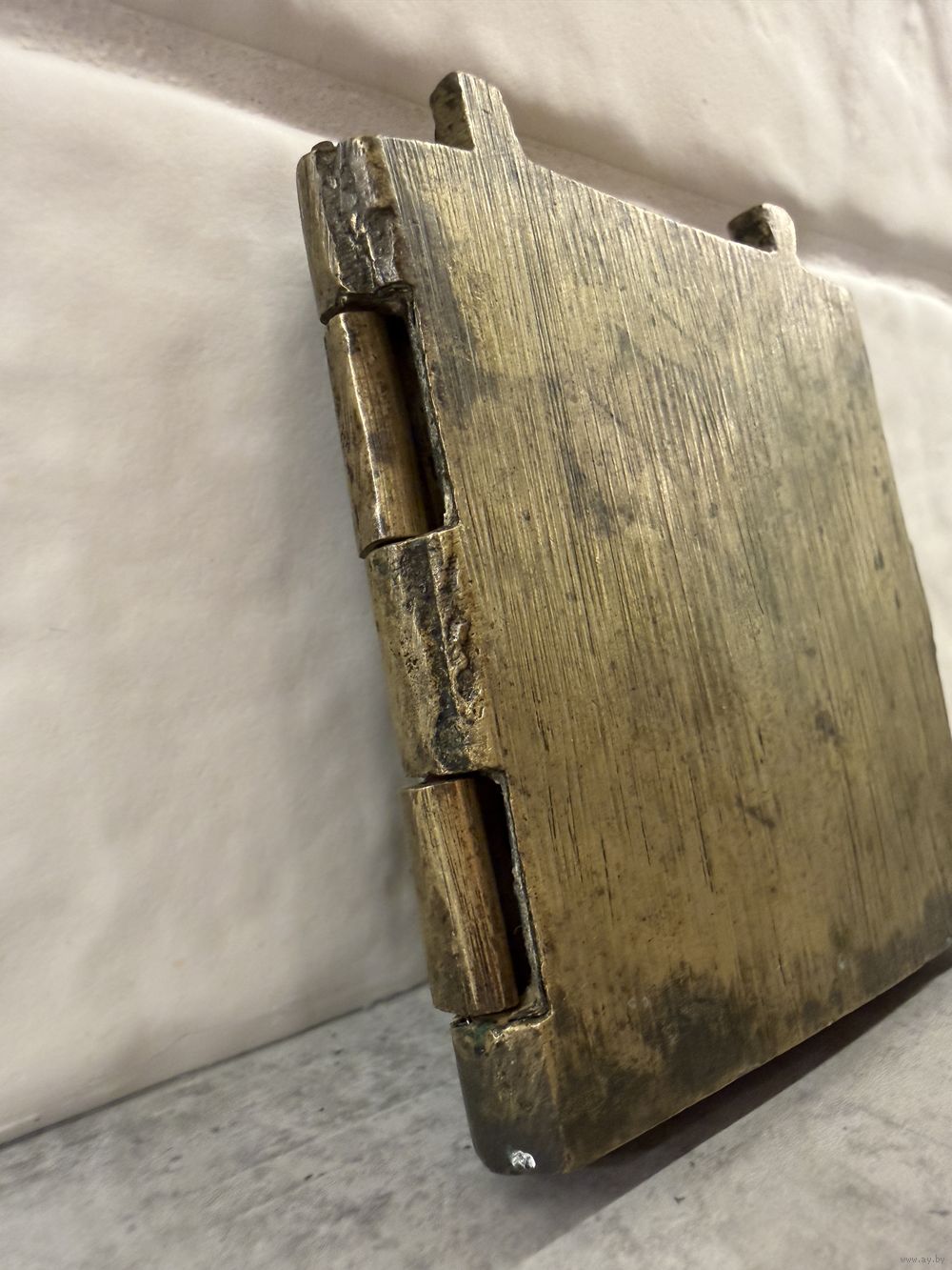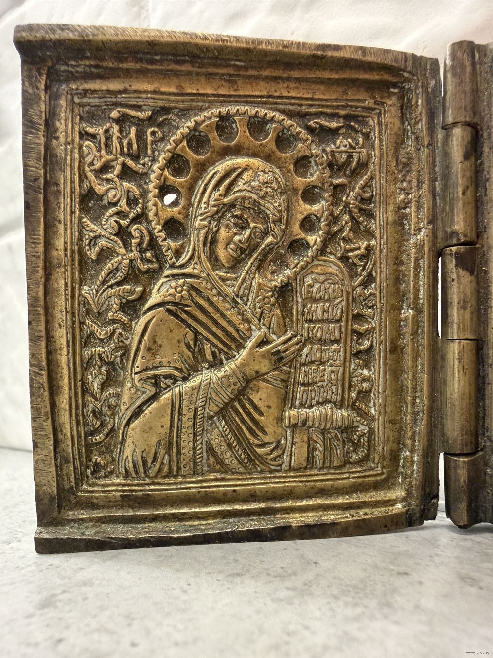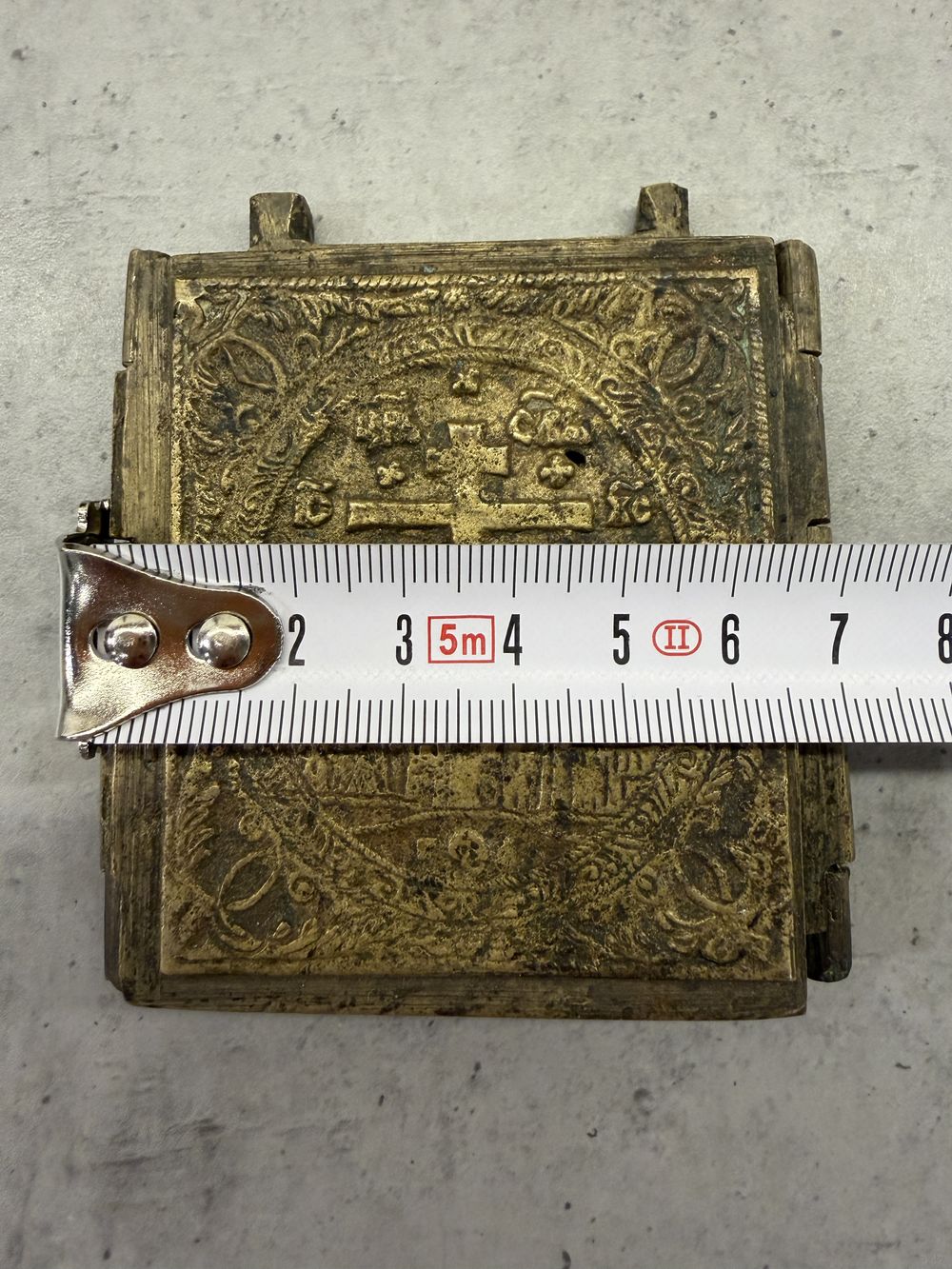 Складень трёхстворчатый "Деисус" Богоматерь, Иисус Христос, Иоанн Предтеча Креститель декорированный изображением Голгофского креста на левой створке Российская империя 1850-1900