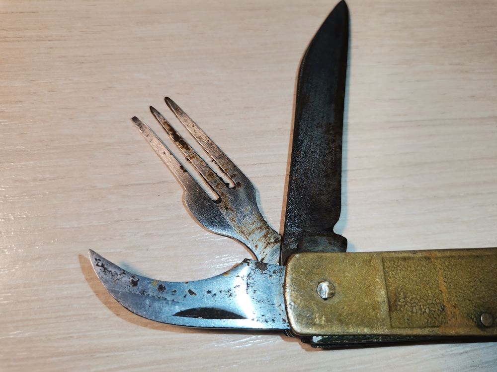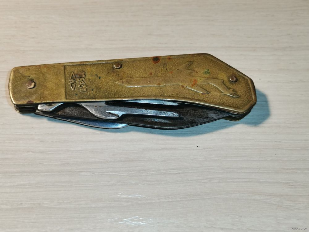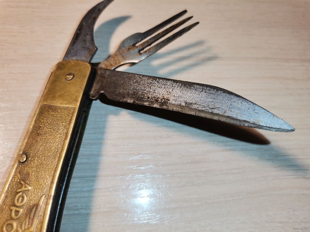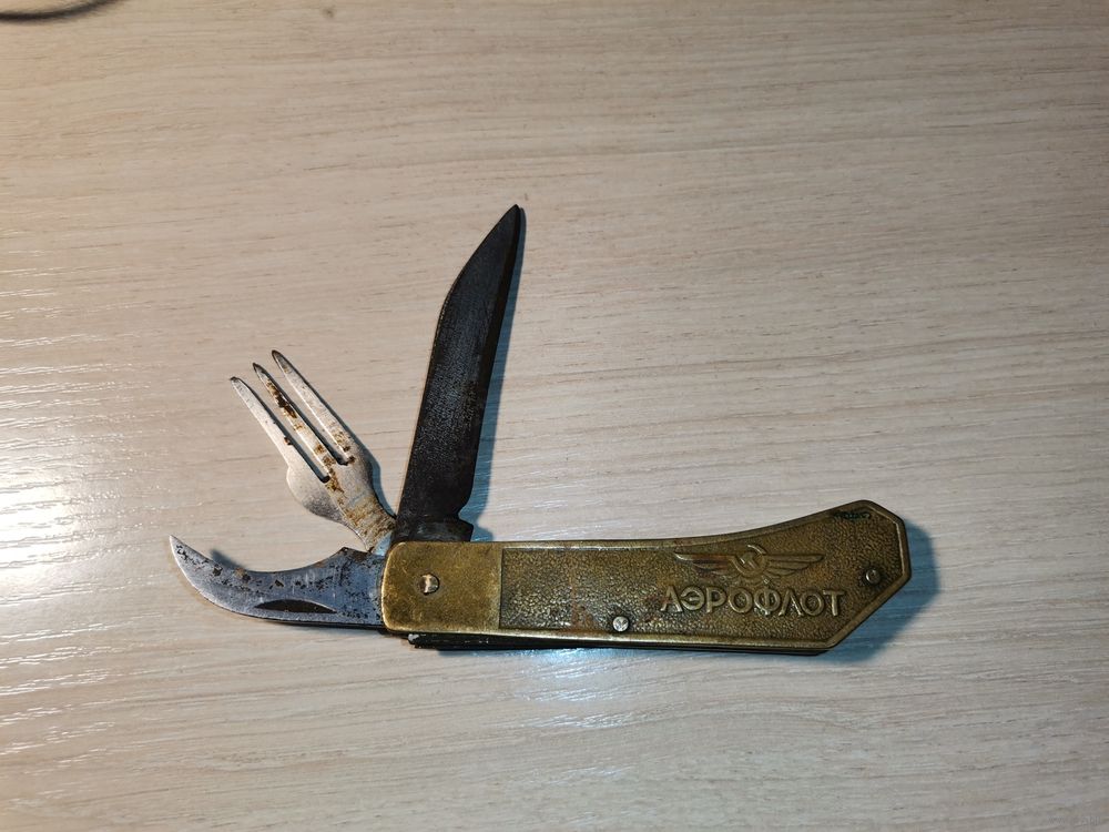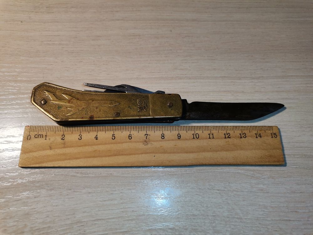 Складной нож "Аэрофлот", с латунными накладками, б/у, времён СССР.
