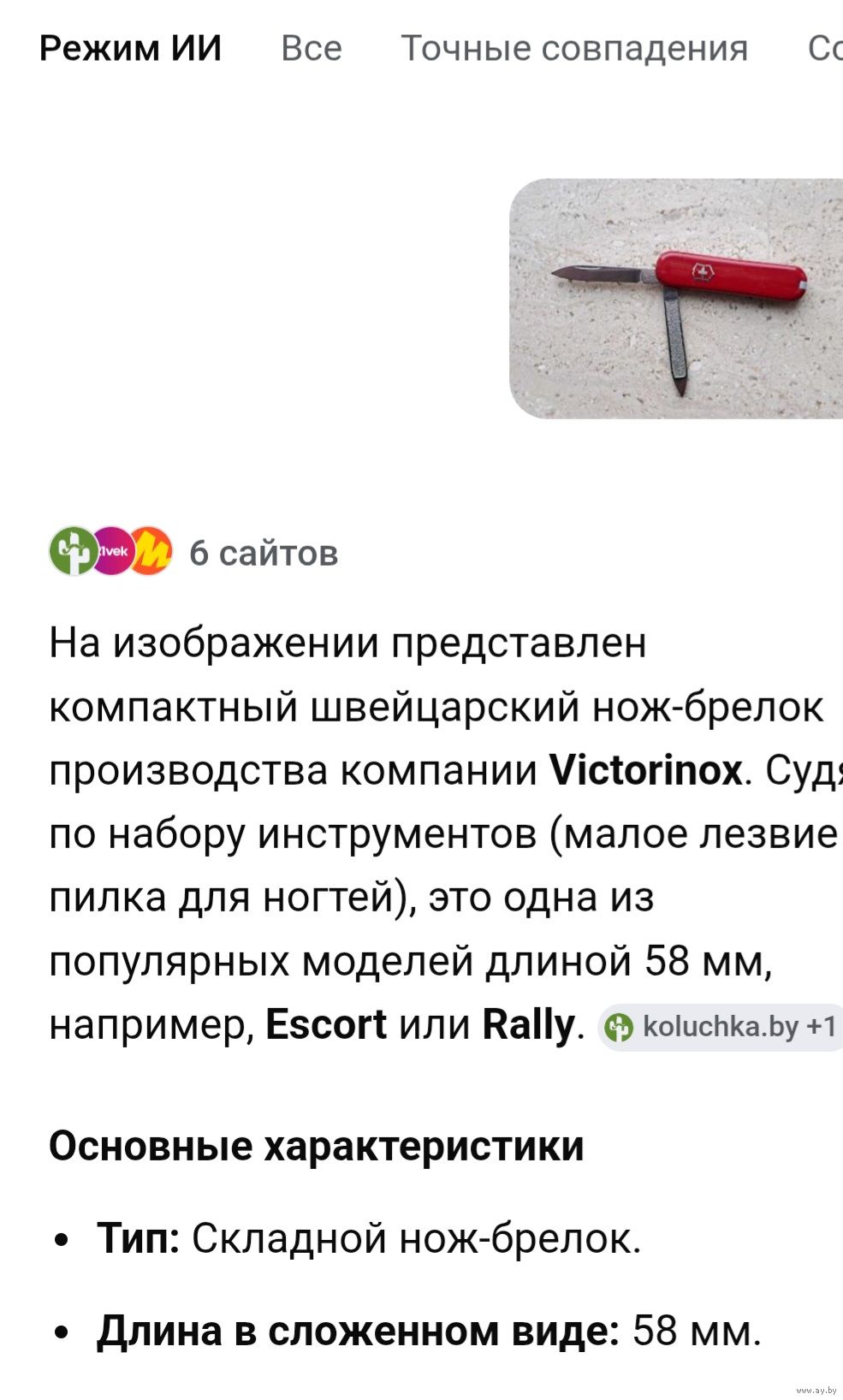 Складной нож - брелок Victorinox Switzerland 58 мм., брак - сломаны ножницы.