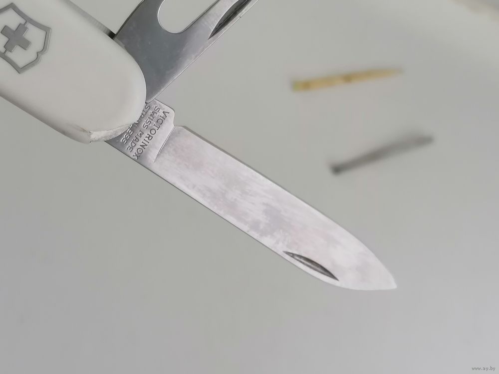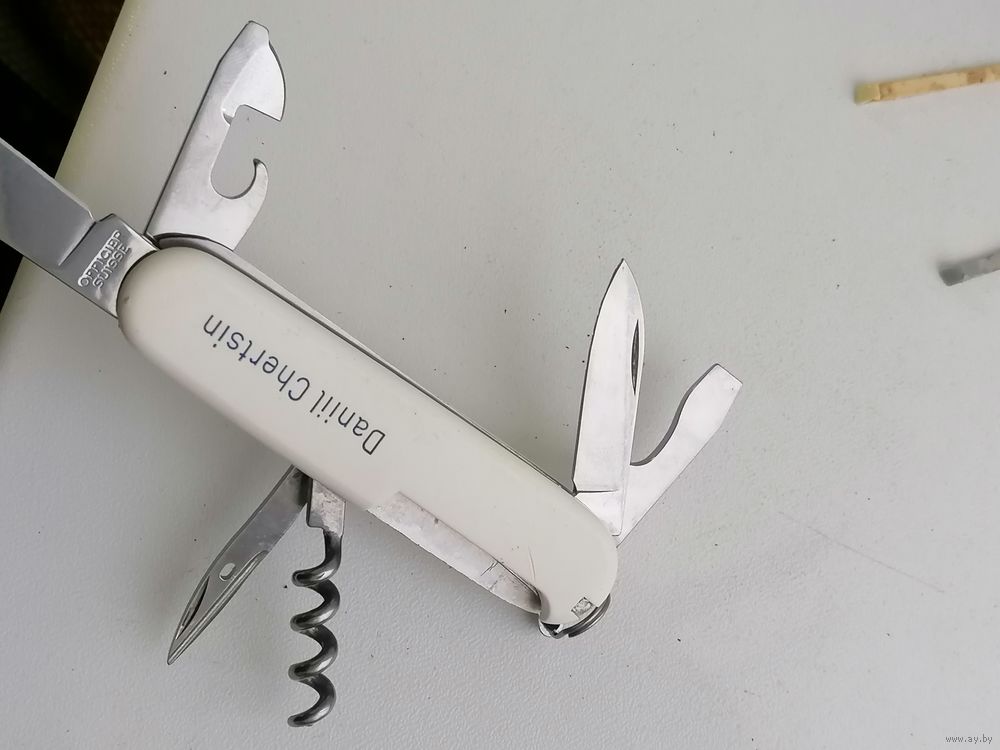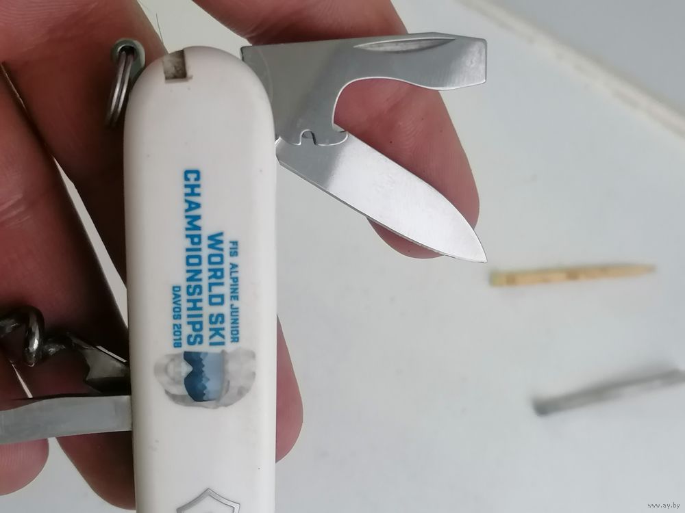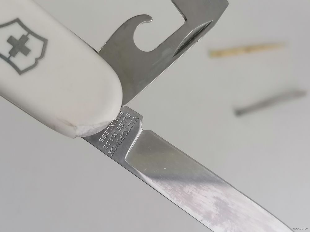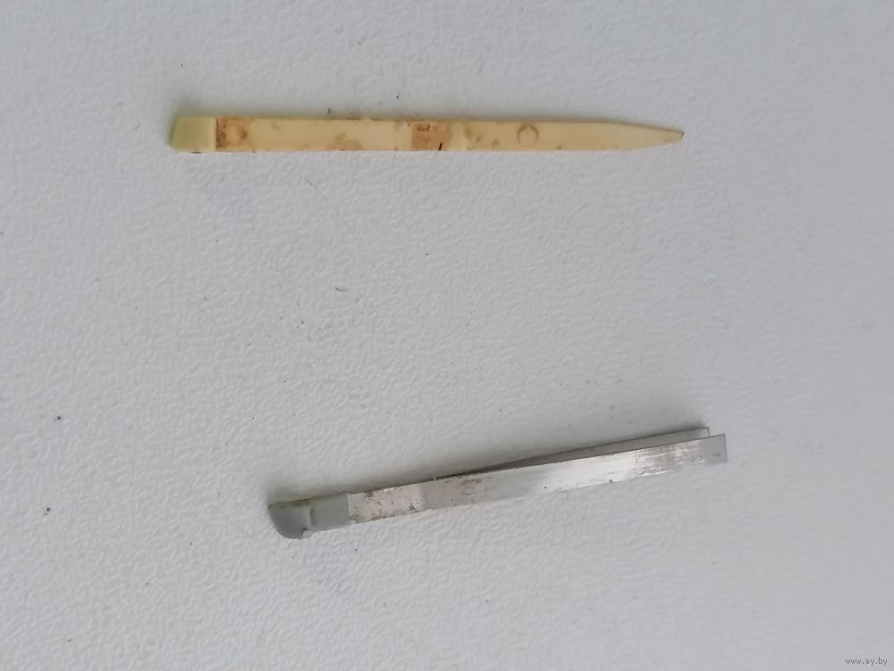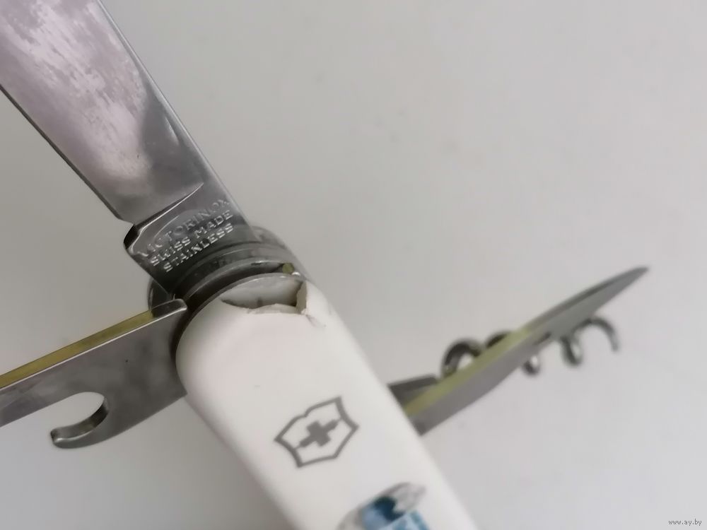 В хорошем состоянии. На пластике есть скол с одной стороны. Сам нож хороший. Смотрите фото