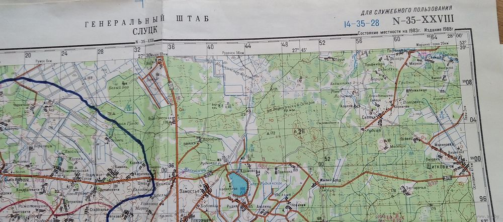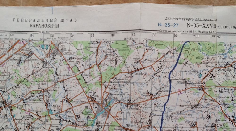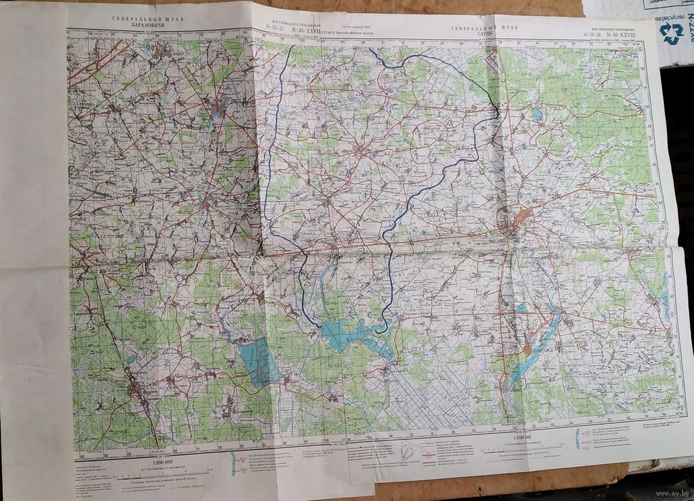 Склейка 2-х карт Генерального штаба СССР. 1:200000. Барановичи и Слуцк. 1980-е.