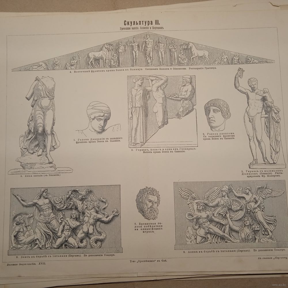 Скульптура 3. Энциклопедическая гравюра конец 19в. 31х24см.