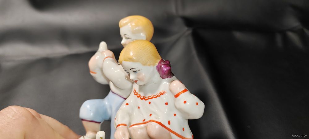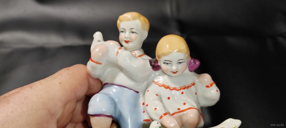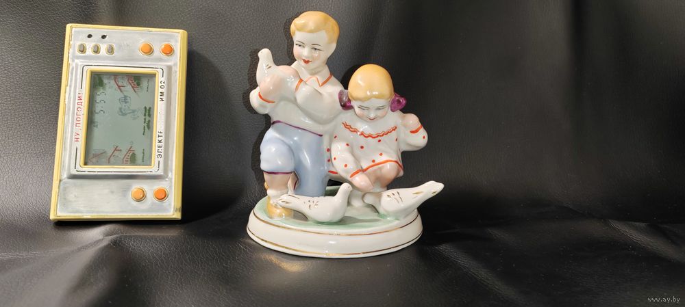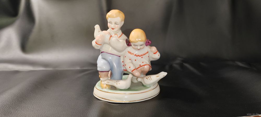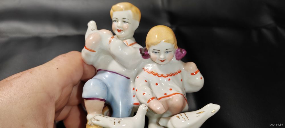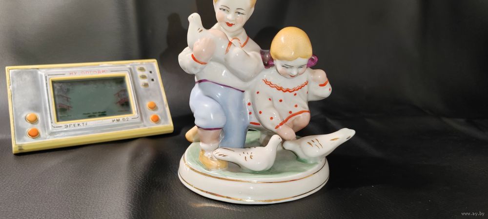 Скульптура"Дети кормят голубей". Фарфор. Полонский завод художественной керамики. Без реставрации.