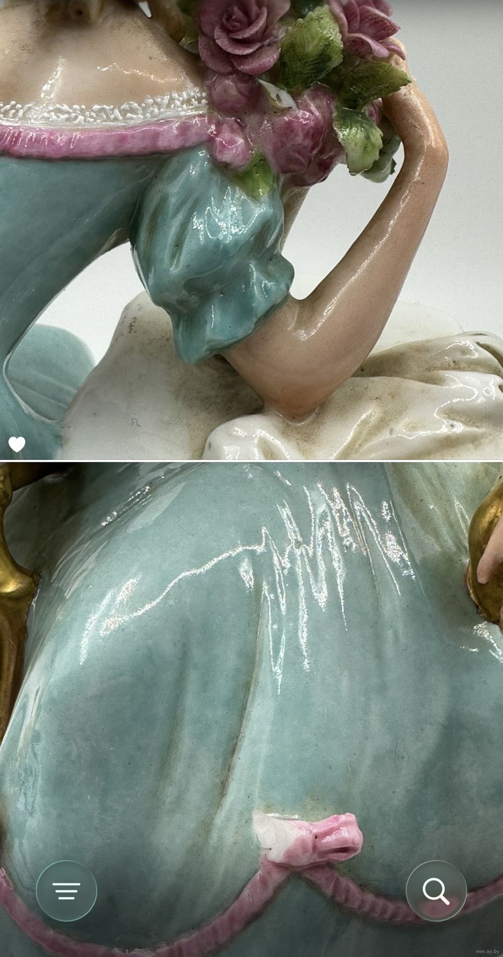 Присутствуют сколы (на бантике платья, шляпке, букете с двух сторон) - на фото.