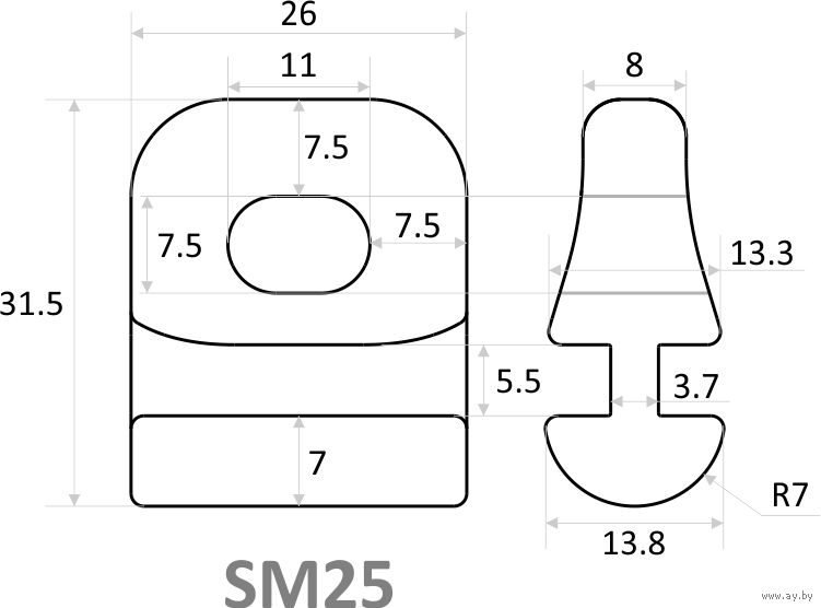 Ползун в ликпаз для грота FreeSky SM25. Он же скользяк, слизняк, sail slug, mainsail slider.