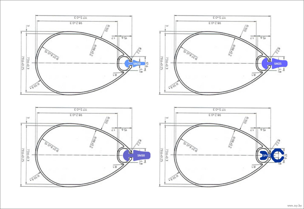 Устанавливаются на парус с шагом 60см. Чертеж с размерами среди фото.