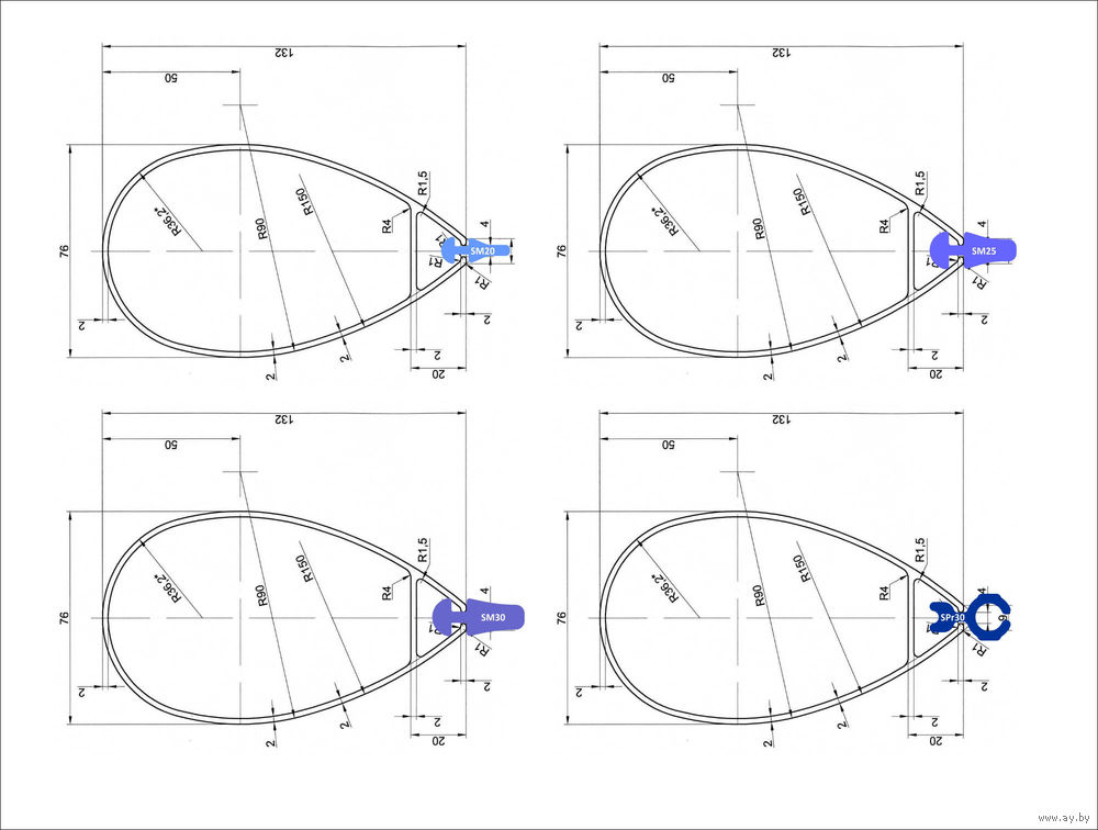 Устанавливаются на парус с шагом 60см. Чертеж с размерами среди фото.