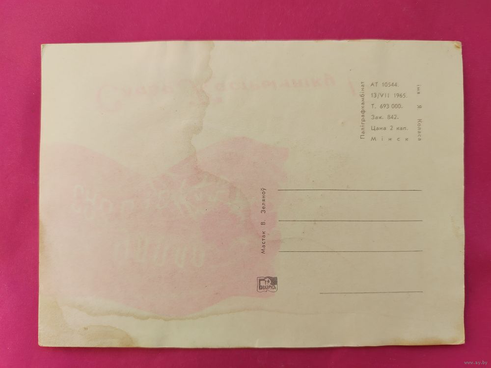 Слава Кастрычнiку! Чистая. 1965 года. Зеленов. 2055.