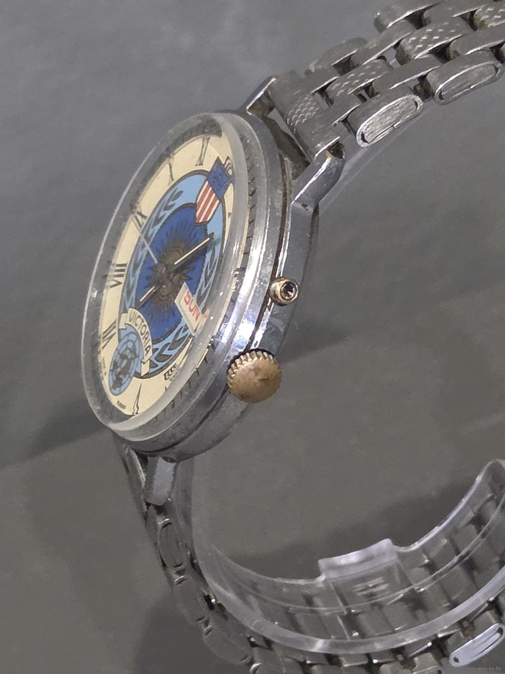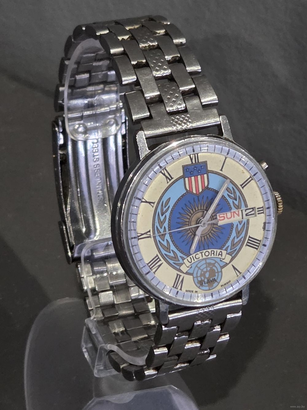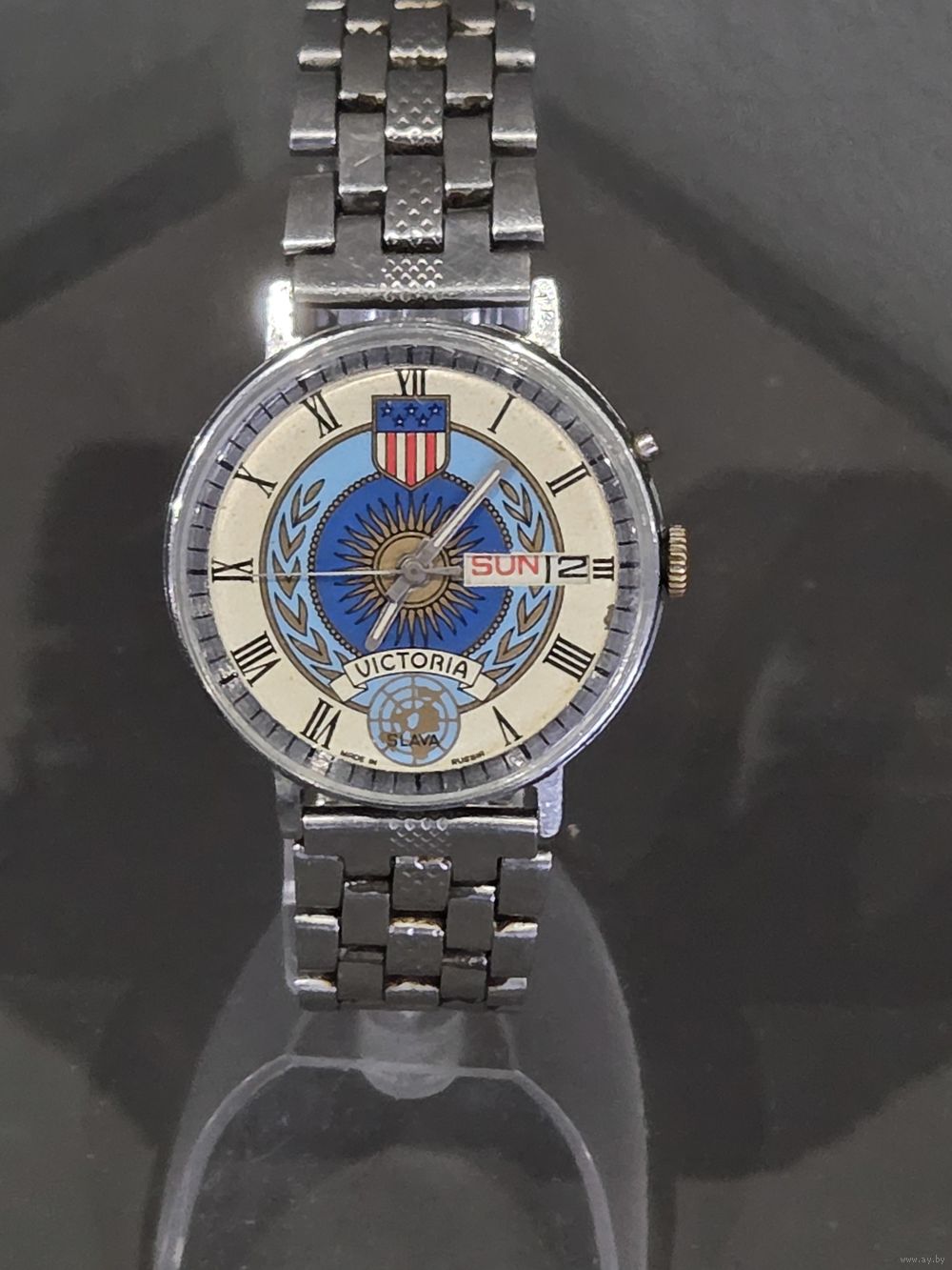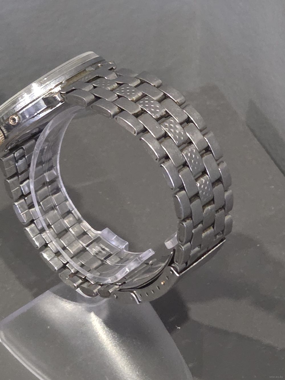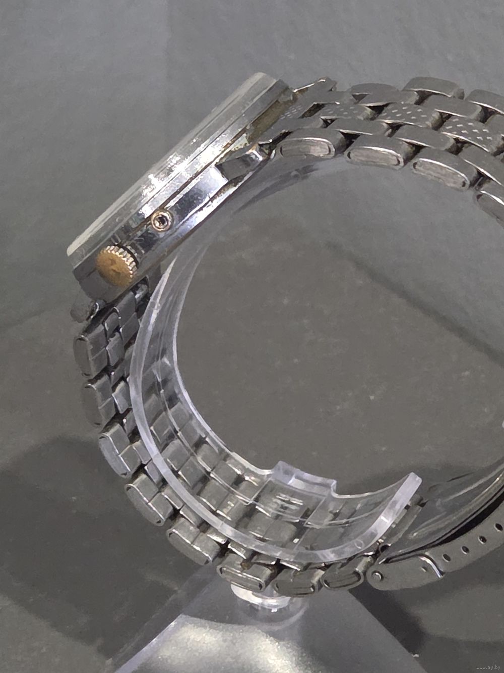 Внешний вид и состояние на фото. Часы на ходу, календарь и кнопка работают. Часы из личной коллекции. Ремешок и подставка в комплекте.