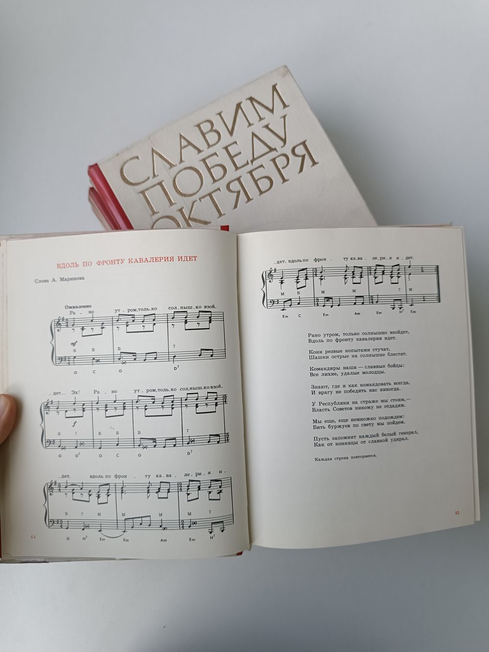 Яблочко, интернационал, катюша, веселые ребята, три танкиста, марш монтажников, пусть всегда будет солнце, хотят ли русские войны, главное ребята, сердцем не стареть, течёт волга, я шагаю по москве, лучший город на земле, ходит песенка по кругу, день победы, лебединая верность, священная война, синий платочек, в землянке, тёмная ночь, смуглянка, дорога на берлин и многие другие песни.