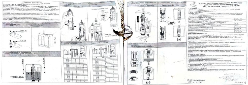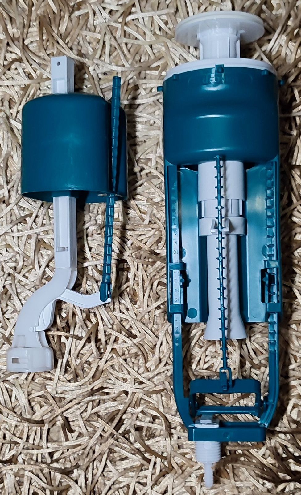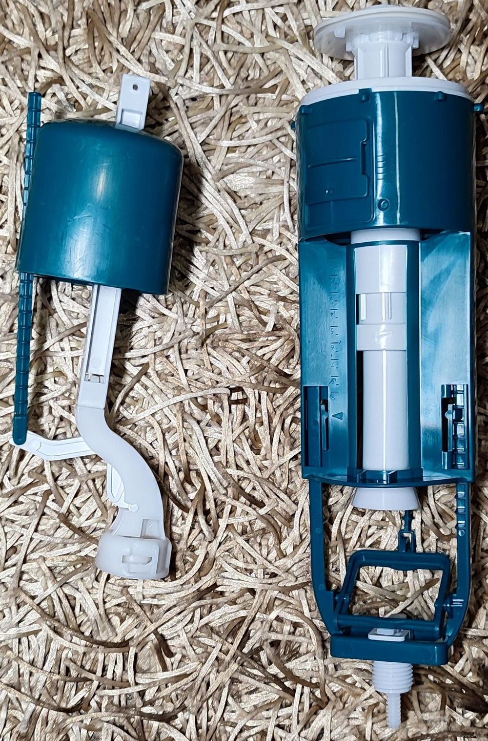 Комплект арматуры для сливного бочка (с нижней подачей воды) собранный из двух пакетов. Всё новое, что-то даже не вскрывалось. Пока ставил первый набор, случайно смыл одну деталь (насколько помню, это была пластиковая гайка для шланга подачи воды), пришлось покупать второй, поэтому набор не полный. Модели: И-СБ2-НпрНР Ф-АА-М Р + И-СБ1-НпрНР Ф-А-В Р (разница на фото №6)
