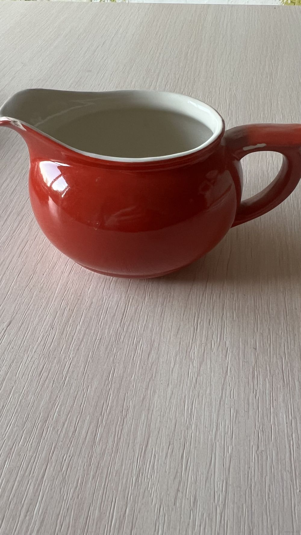 Молочник из сервиза "Punahilkka" финской марки Arabia. Посуда относится к R-модели, разработанной Ольгой Осоли в 1942 году. Цвет: Яркий красный оттенок был разработан Гретой-Лисой Ядерхольм-Снеллманн. Маркировка: На дне изделия виден штамп "ARABIA FINLANDIA" и номер "62". Недостатки видны на фото.Оплата после визуального осмотра Покупателем. Наличный расчет.