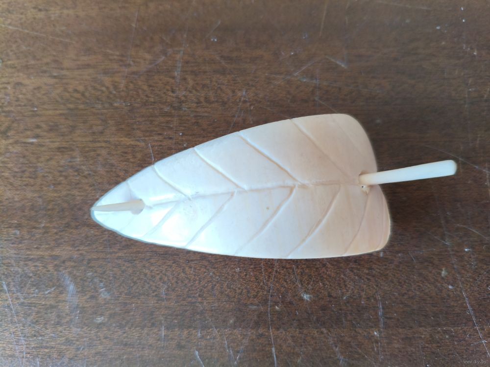 Слоновая кость, заколка для волос -- листик.