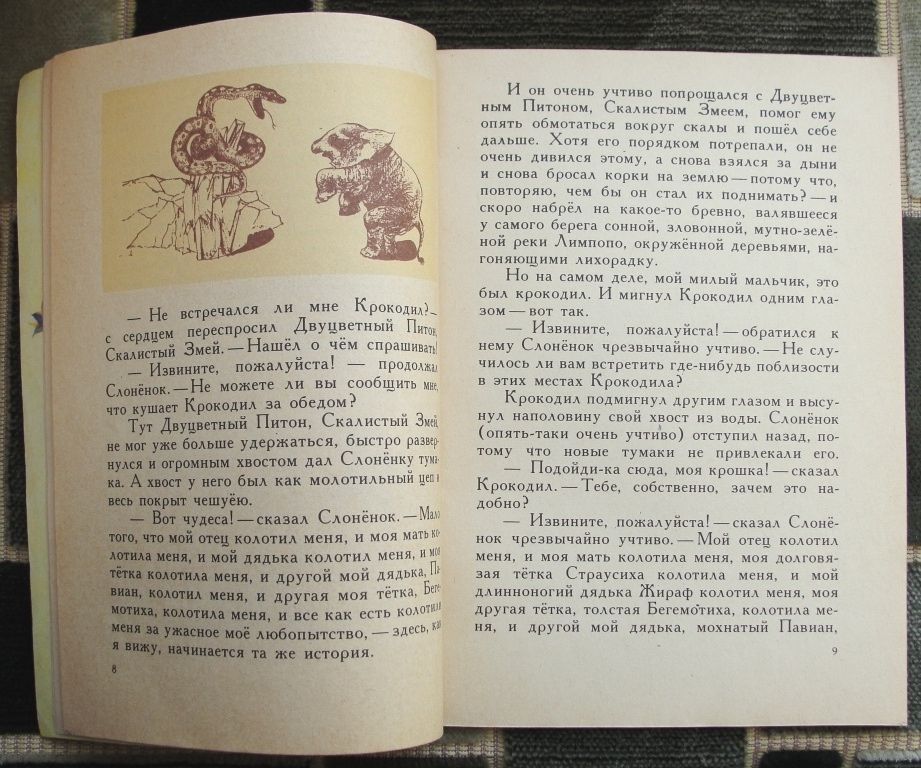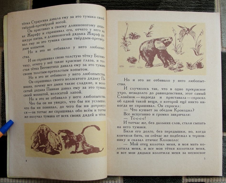 У маленького, но очень любопытного слонёнка был черноватый тостый нос величиной с сапог. Ещё у него было много родственников, которые били его за то, что вечно доставал их разными вопросами.