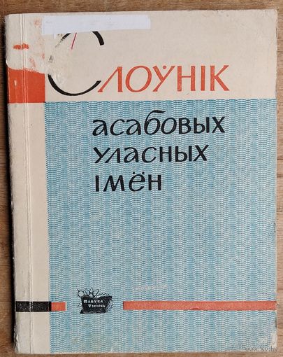 Слоўнік асабовых уласных імён. Акадэмія навук БССР, Інстытут мавазнаўства імя Я. Коласа. Мінск. Навука і тэхніка, 1965 г. 111 с. Мяккая вокладка. Кішэнны фармат.