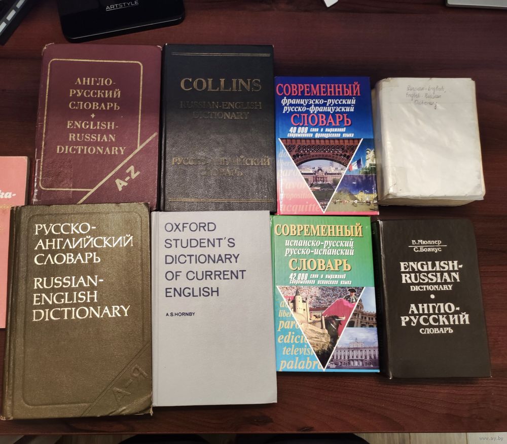 Словари, б/у, 8шт. (английский, французский, испанский, белорусский):
