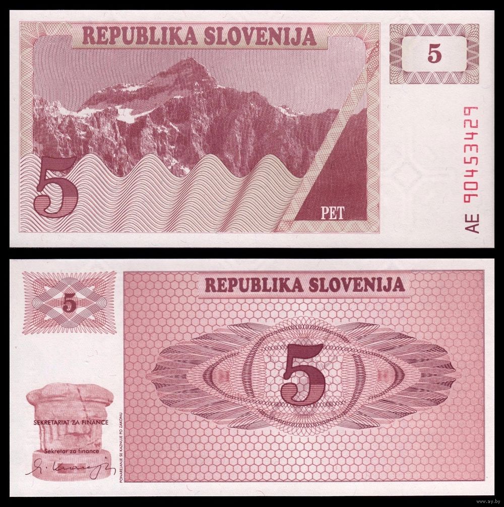 Словения 5 толаров образца 1990 года UNC p3