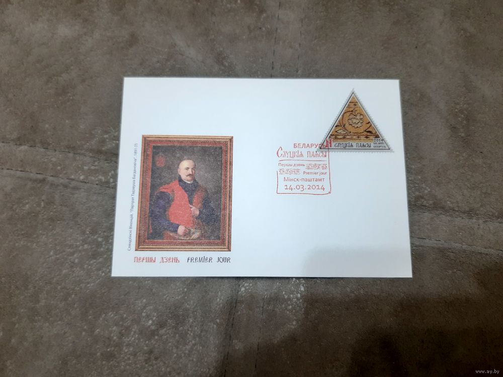 Ко дню ввода марки «Слуцкие пояса» представили и почтовый конверт «Слуцкие пояса», который можно было отправить всего один день, 14 марта, а на следующий день конверт стал коллекционным.