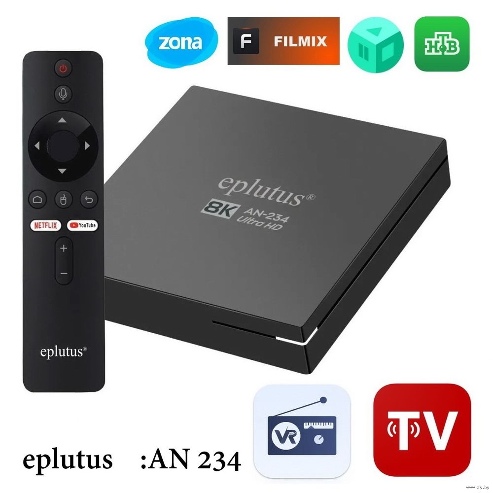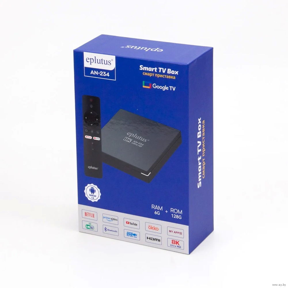 Смарт ТВ приставка, Eplutus AN-234 обеспечивает высокую производительность и стабильную работу на базе операционной системы Android. Оснащена 6 ГБ оперативной памяти, что обеспечивает плавное и быстрое воспроизведение контента. Благодаря поддержке стандарта видео декодера 8K и разрешению высокой четкости, вы сможете наслаждаться кристально чистым изображением.