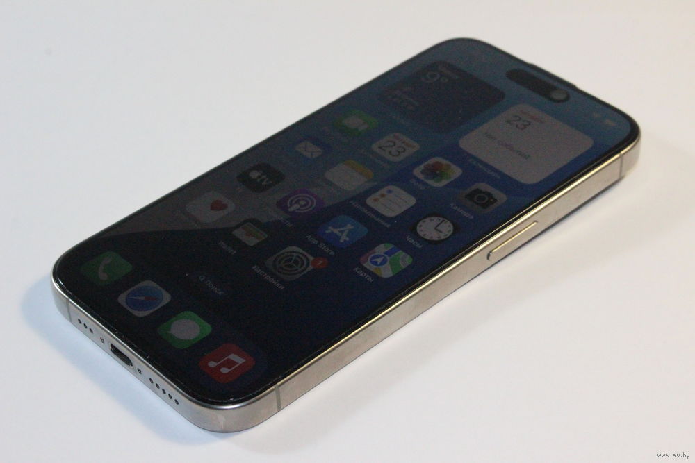 iOS, экран 6.1" OLED (1179x2556) 120 Гц, Apple A17 Pro, ОЗУ 8 ГБ, память 128 ГБ, камера 48 Мп, аккумулятор 3274 мАч, моноблок, влагозащита IP68, 88% акб, 520 циклов