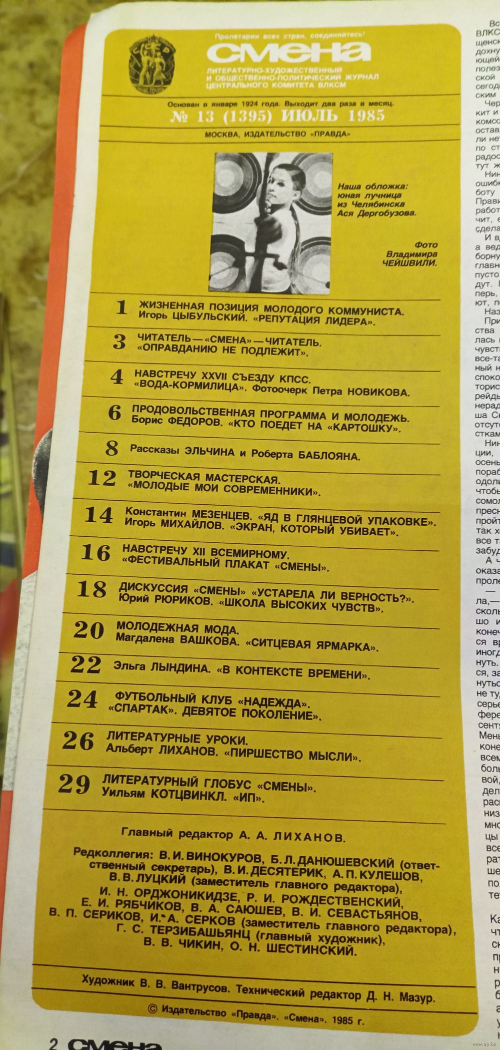 СМЕНА.Номер 13,июль 1985г..Литературно-художественный и общественно-политический журнал ЦК ВЛКСМ.