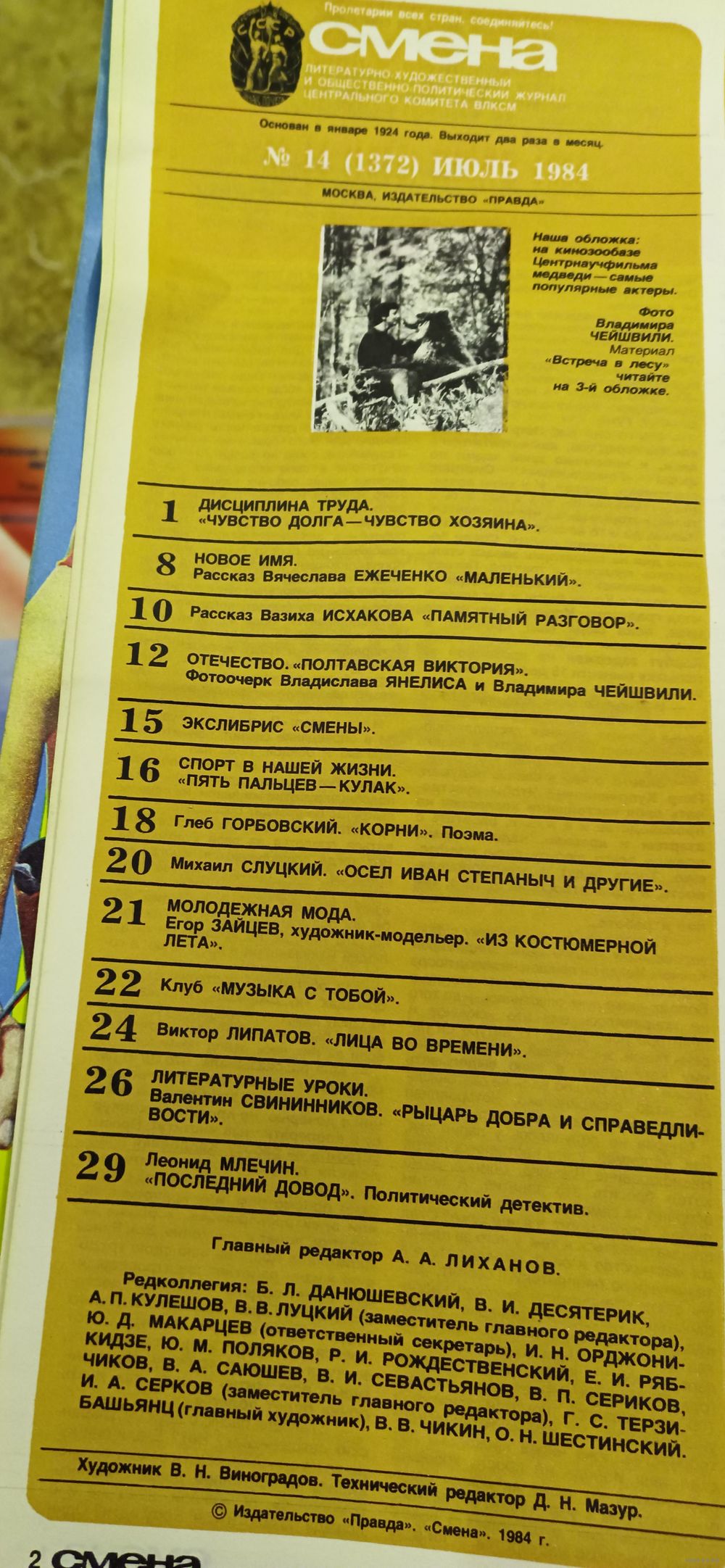 СМЕНА.Номер 14 , июль 1984г..Литературно-художественный и общественно-политический журнал ЦК ВЛКС