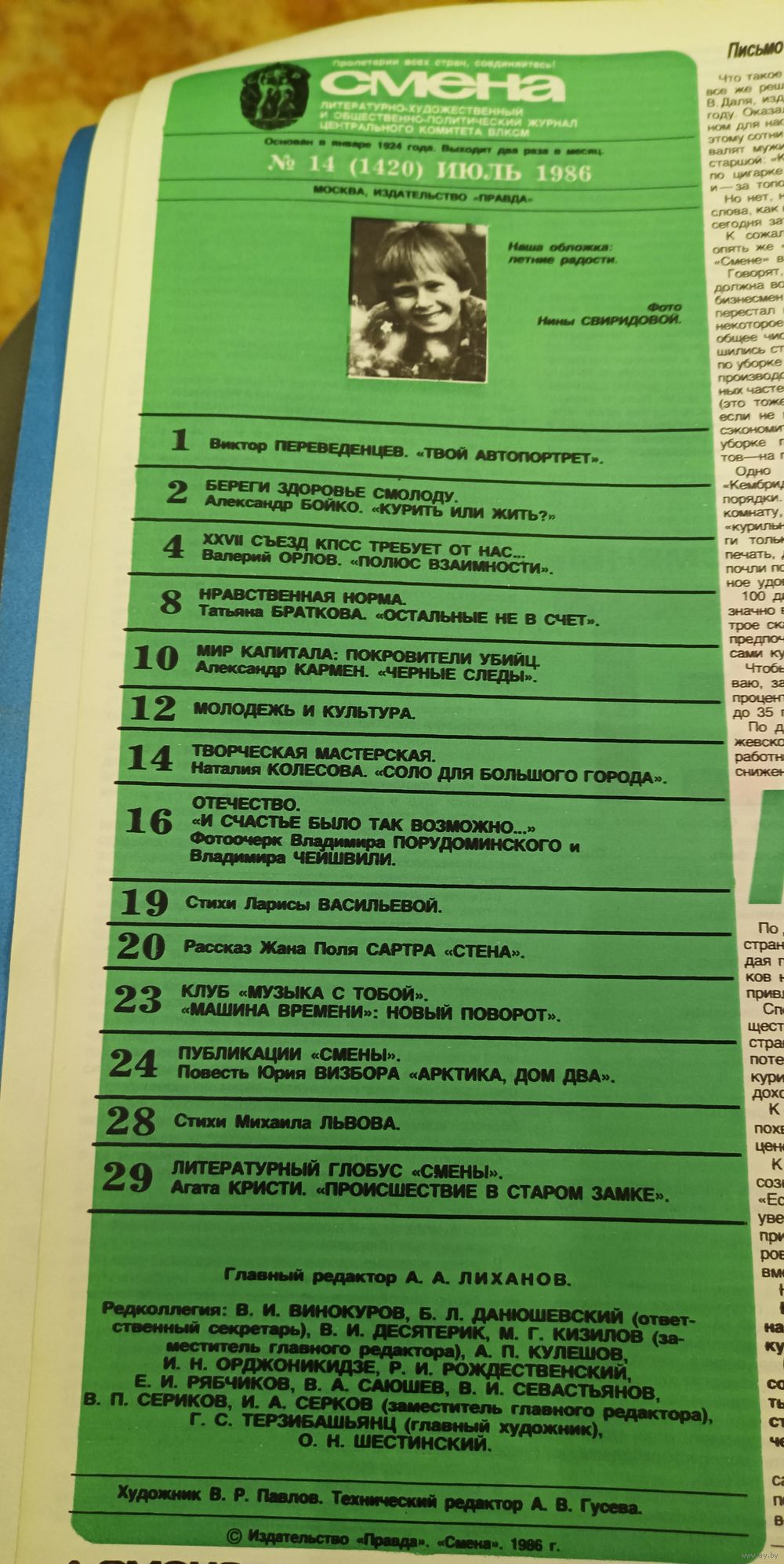 СМЕНА.Номер 14,июль 1986г..Литературно-художественный и общественно-политический журнал ЦК ВЛКСМ.