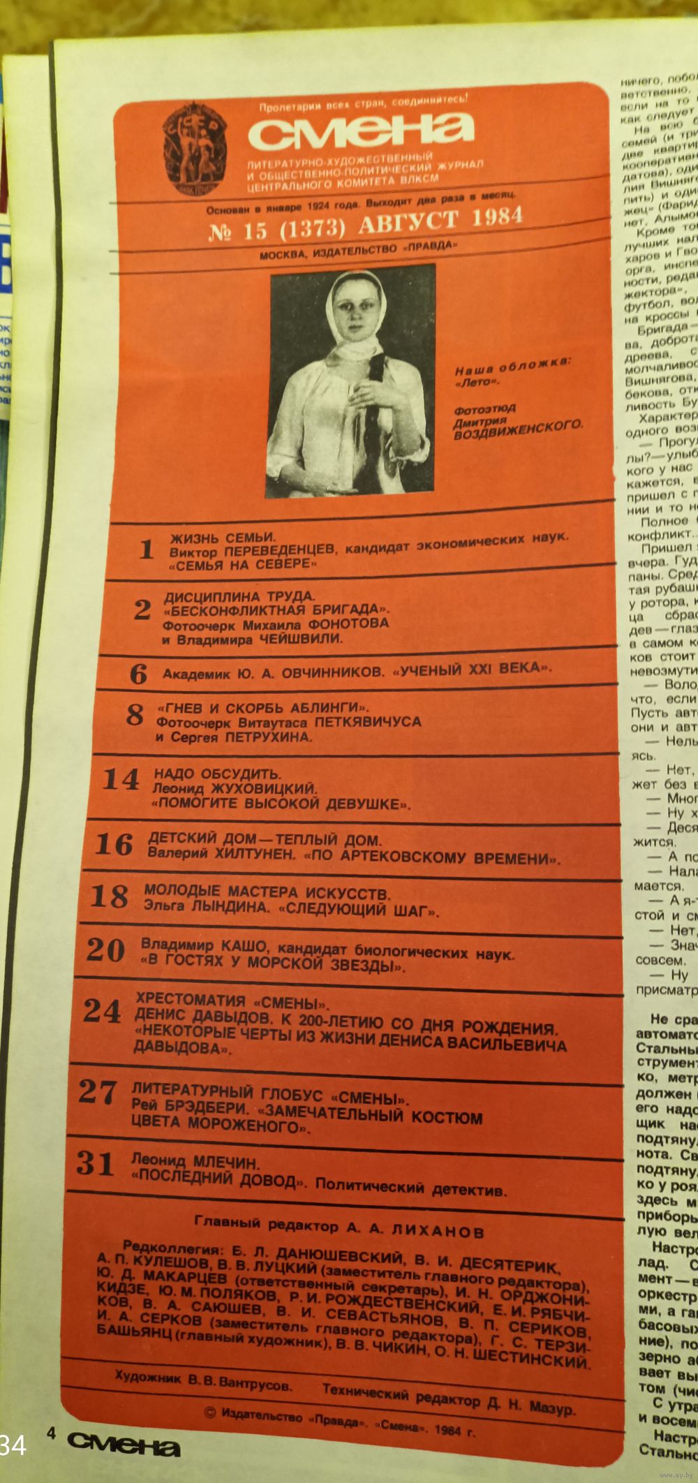 СМЕНА.Номер 15 , август 1984г..Литературно-художественный и общественно-политический журнал ЦК ВЛКСМ