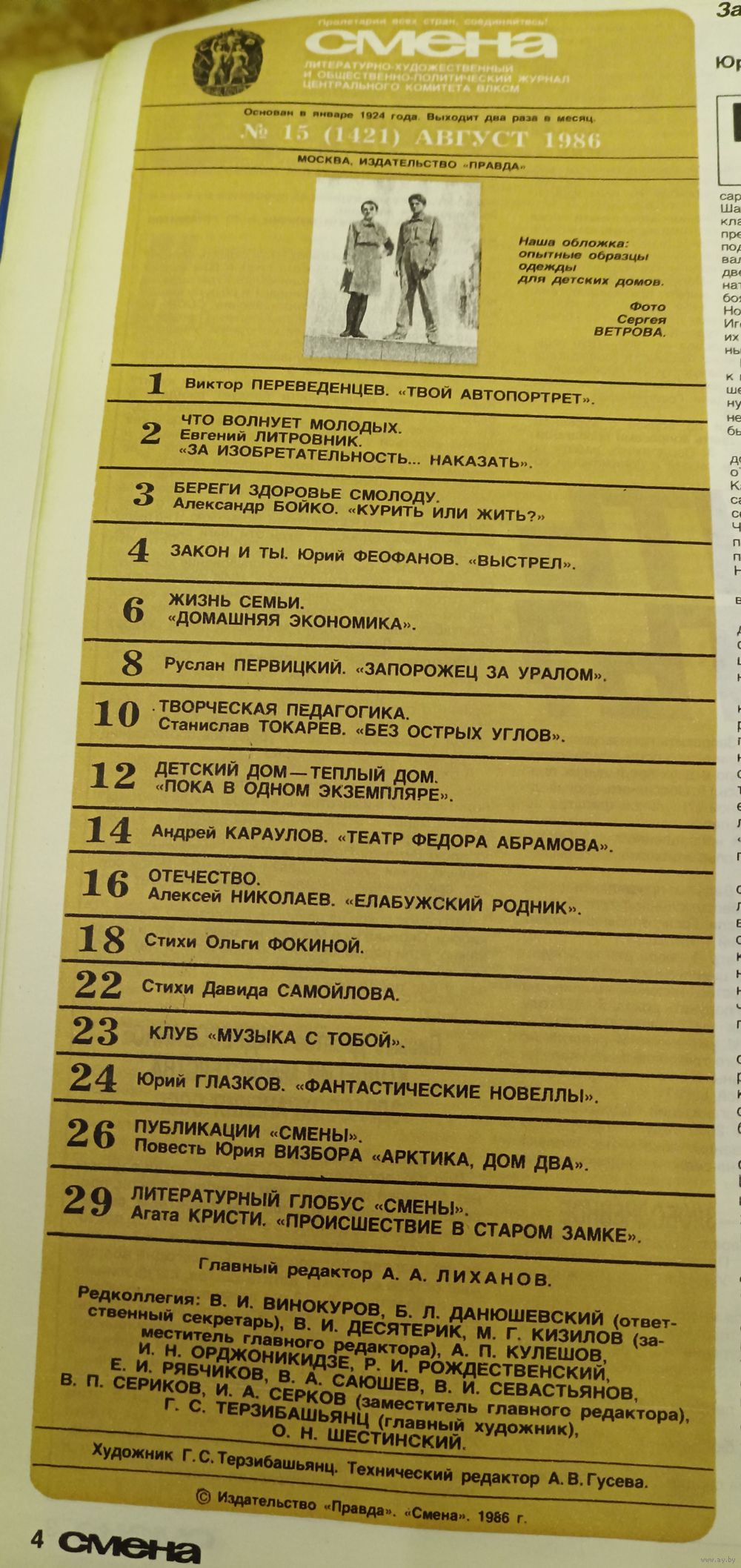 СМЕНА.Номер 15,август 1986г..Литературно-художественный и общественно-политический журнал ЦК ВЛКСМ.