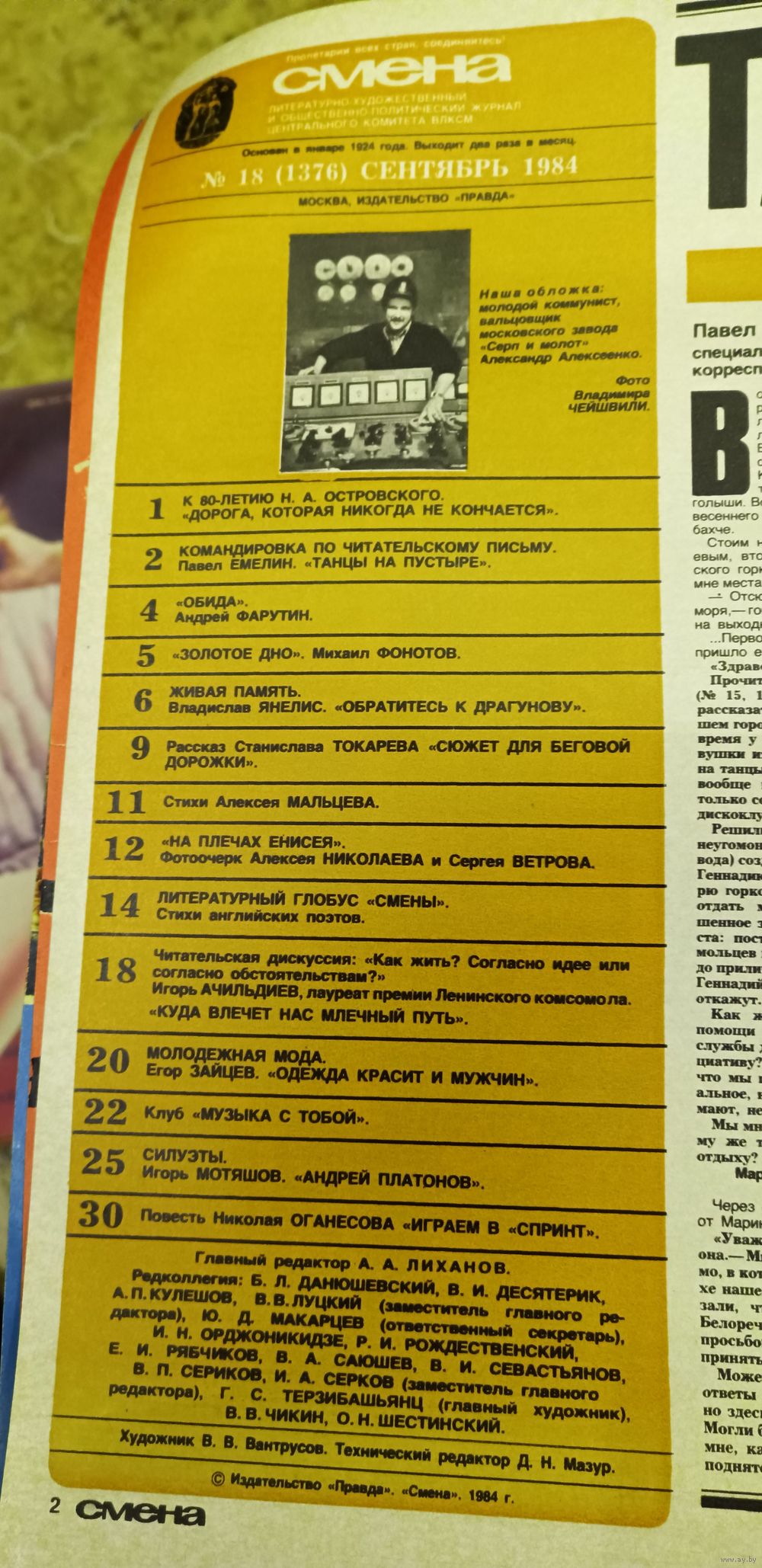 СМЕНА.Номер 18 , сентябрь 1984г..Литературно-художественный и общественно-политический журнал ЦК ВЛКСМ