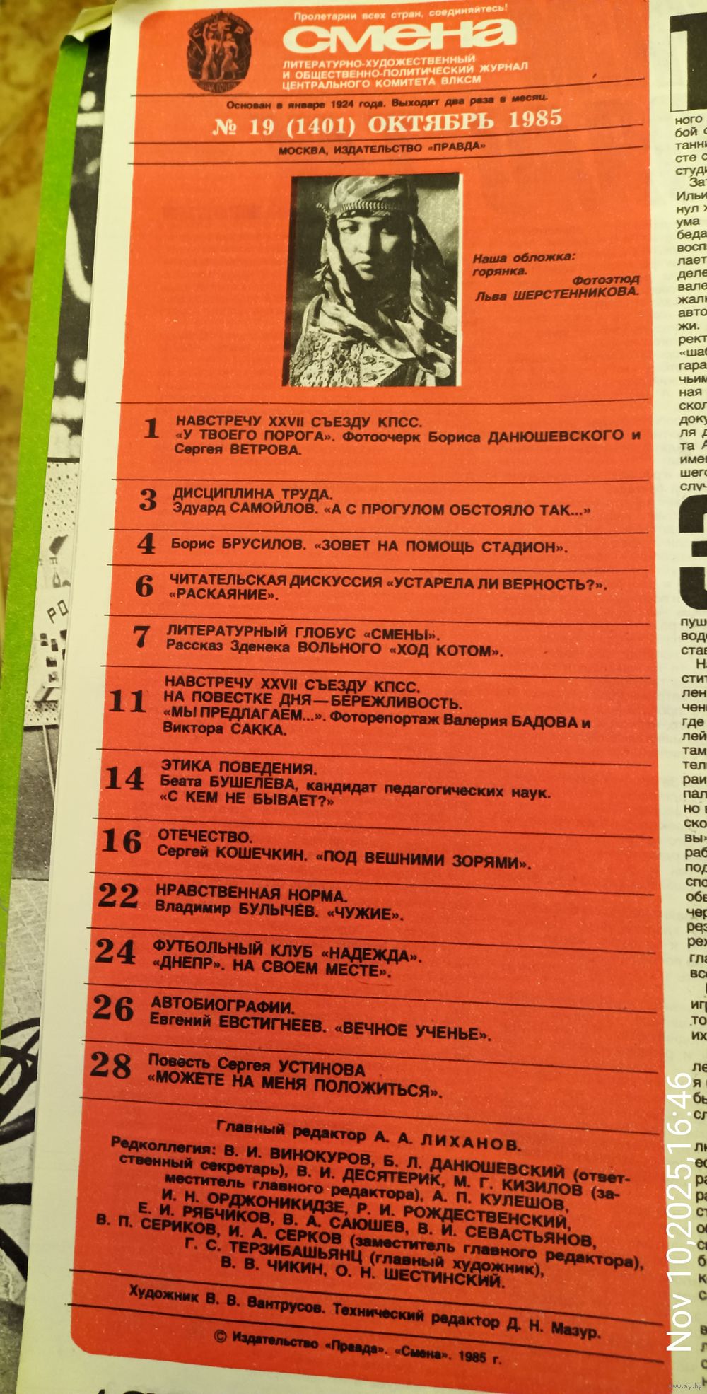 СМЕНА.Номер 19,октябрь 1985г..Литературно-художественный и общественно-политический журнал ЦК ВЛКСМ.