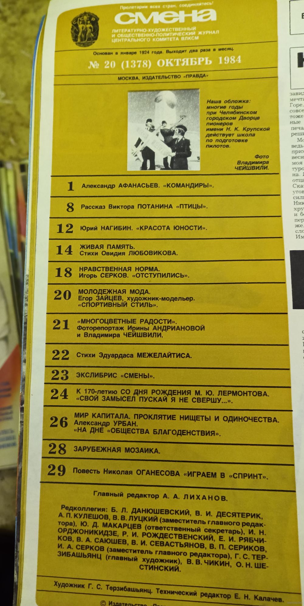 СМЕНА.Номер 20 , октябрь 1984г..Литературно-художественный и общественно-политический журнал ЦК ВЛКСМ