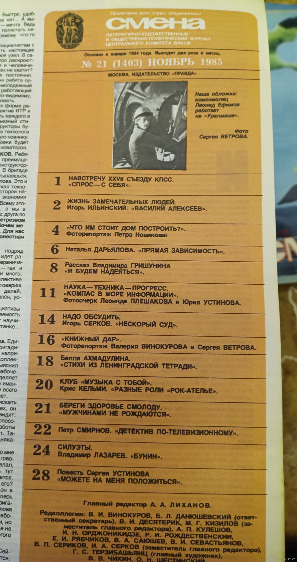 СМЕНА.Номер 21,ноябрь 1985г..Литературно-художественный и общественно-политический журнал ЦК ВЛКСМ.