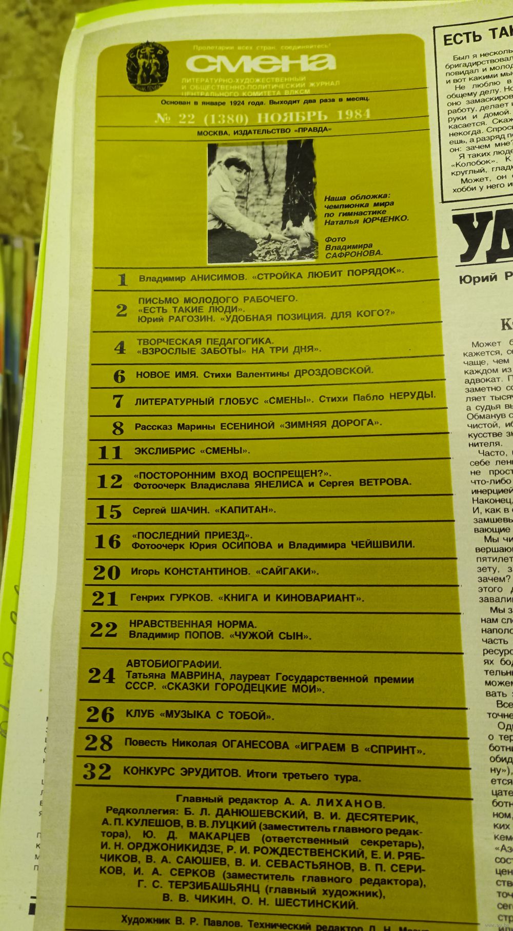 СМЕНА.Номер 22 , ноябрь 1984г..Литературно-художественный и общественно-политический журнал ЦК ВЛКСМ