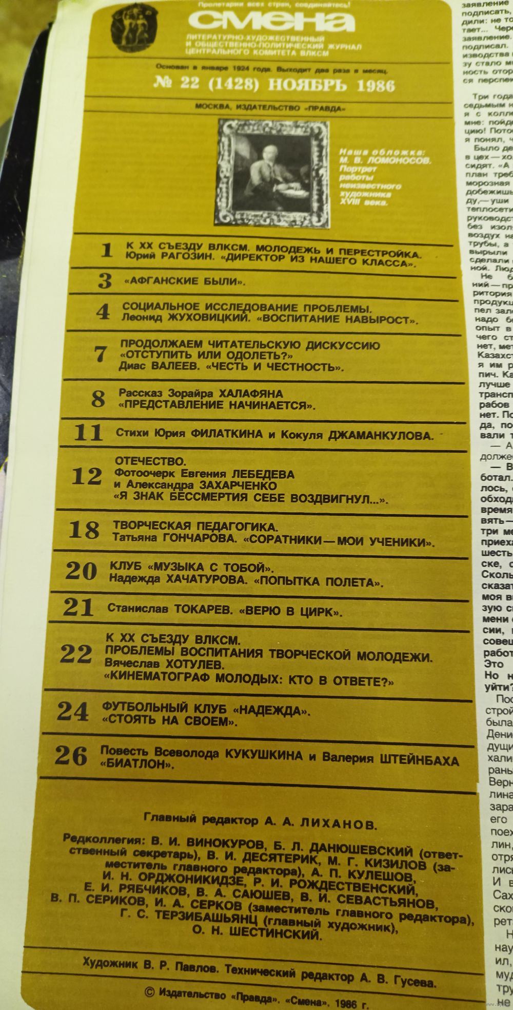 СМЕНА.Номер 22,ноябрь 1986г..Литературно-художественный и общественно-политический журнал ЦК ВЛКСМ.