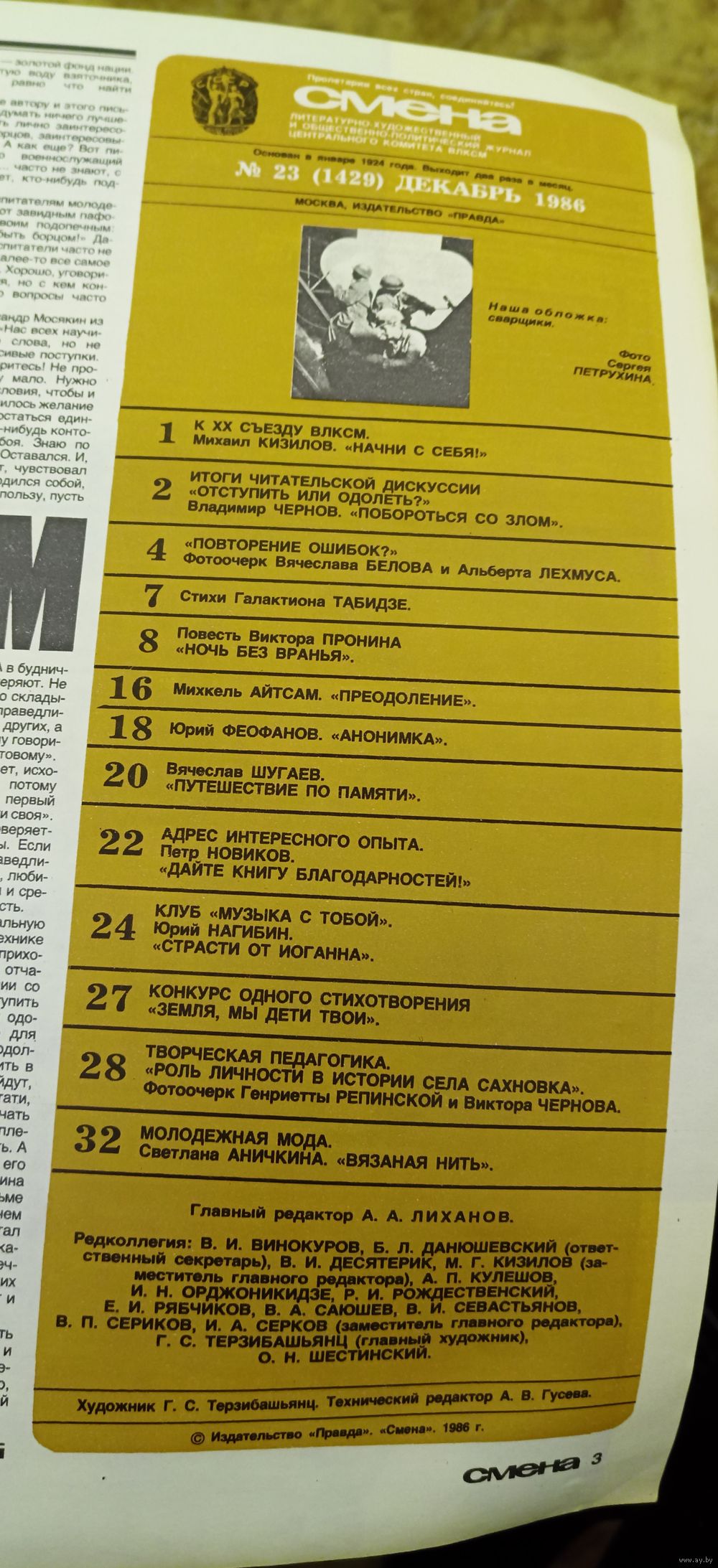 СМЕНА.Номер 23,декабрь 1986г..Литературно-художественный и общественно-политический журнал ЦК ВЛКСМ.