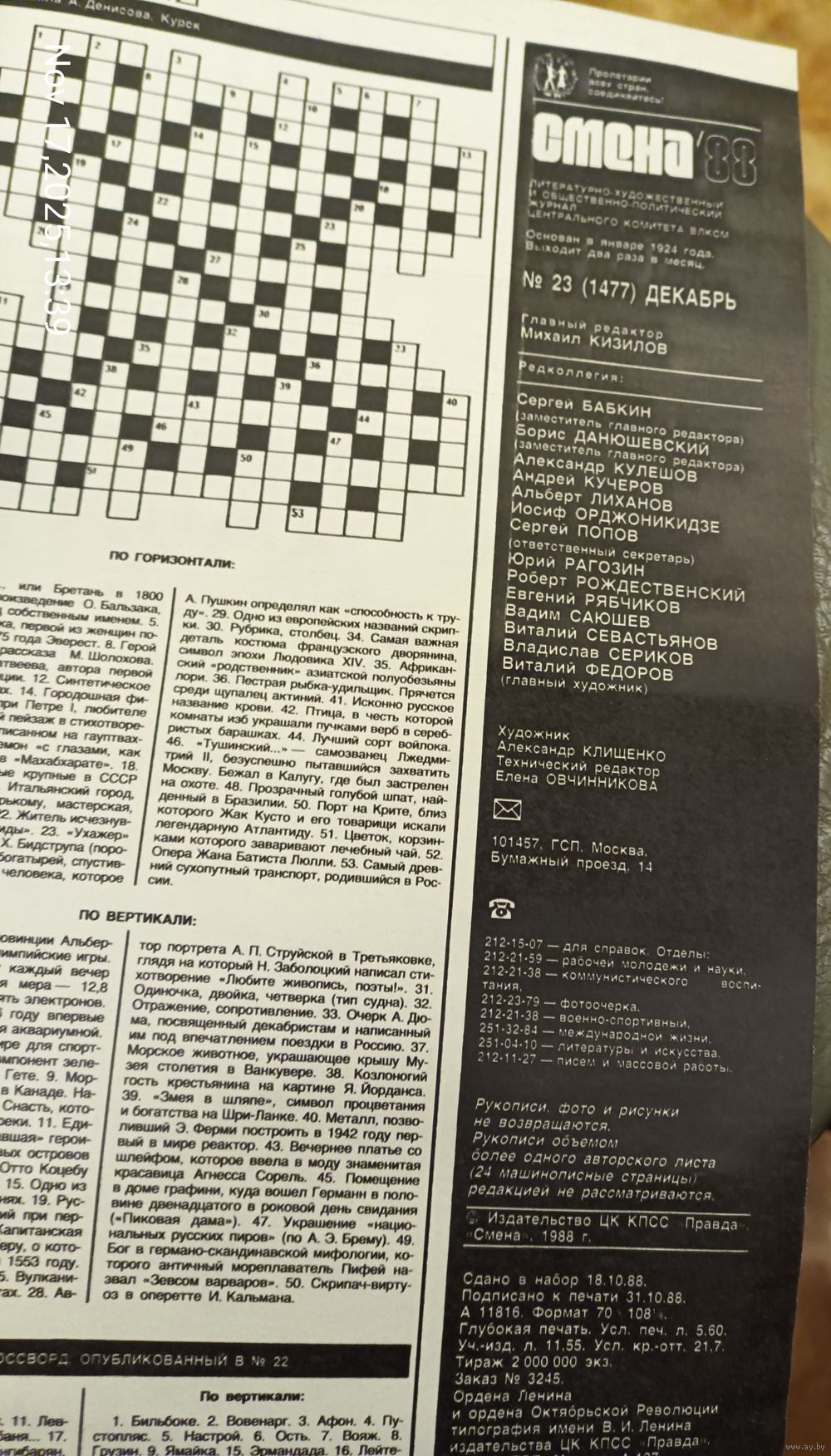 СМЕНА.Номер 23,декабрь 1988г..Литературно-художественный и общественно-политический журнал ЦК ВЛКСМ.