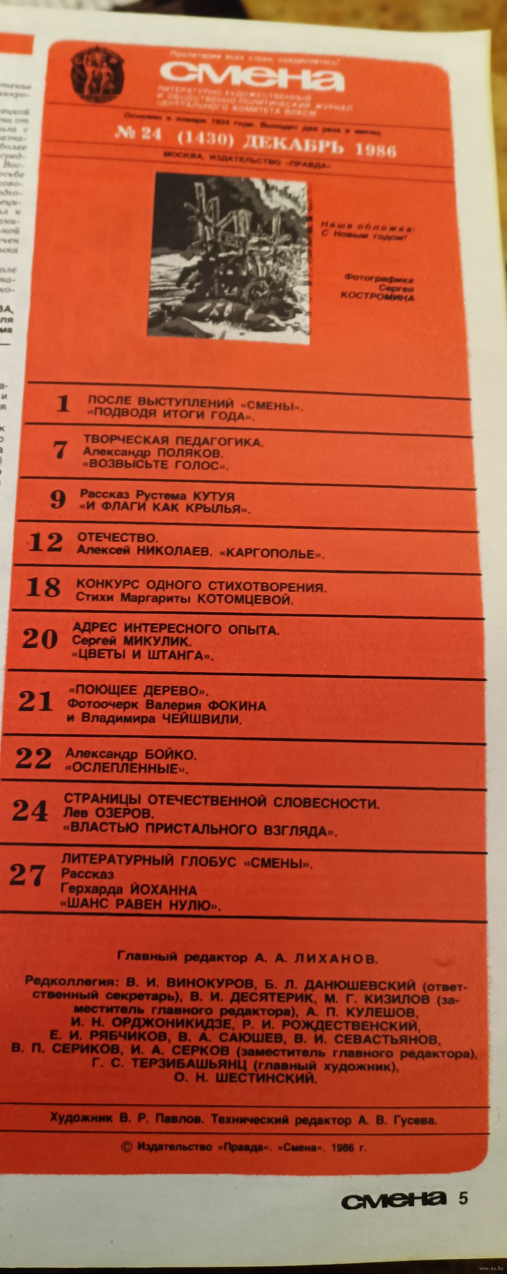 СМЕНА.Номер 24,декабрь 1986г..Литературно-художественный и общественно-политический журнал ЦК ВЛКСМ.